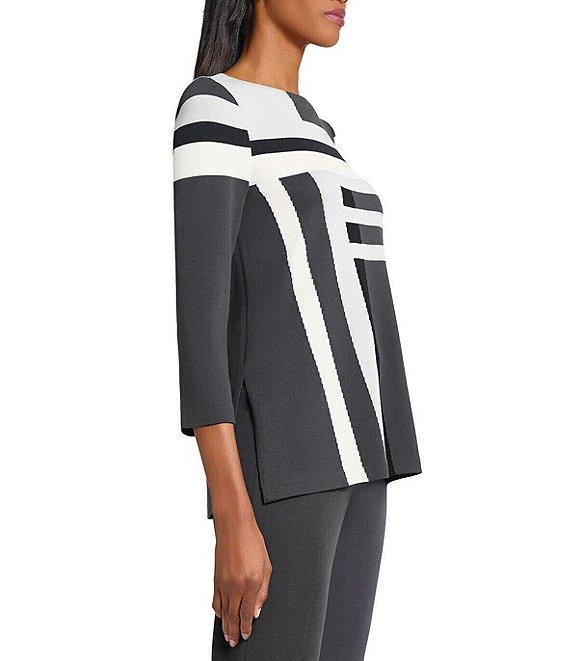 Ming Wang Intarsia Color Block Soft Knit Boat Neck 3/4 Sleeve Tunic