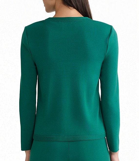Ming Wang Knit Crew Neck Long Sleeve Button Front Cardigan