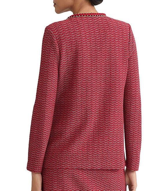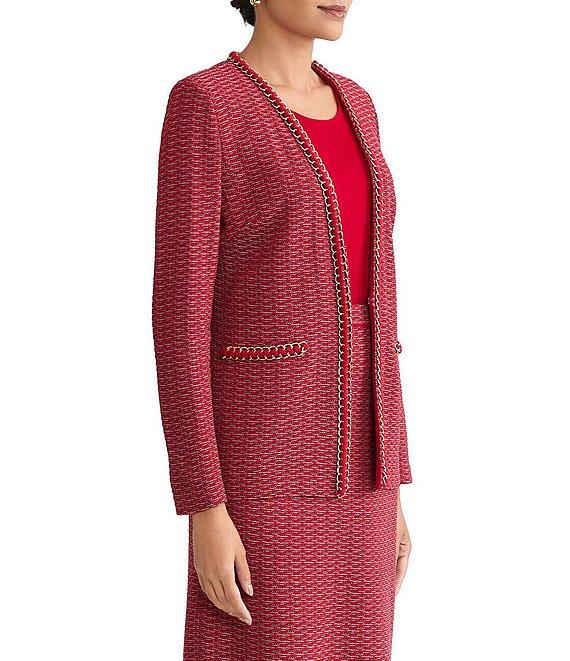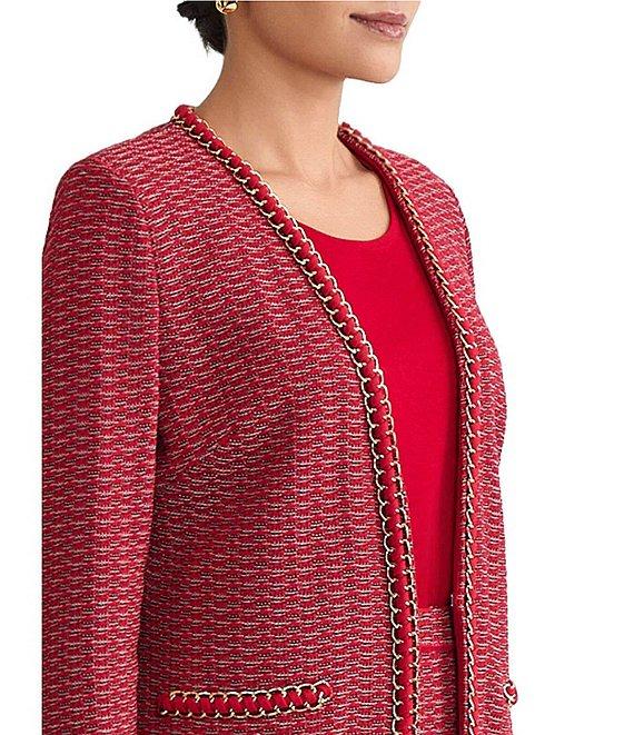 Ming Wang Petite Whipstitch Chain Trim Knit Long Sleeve Jacket