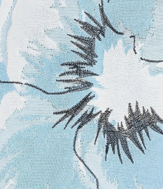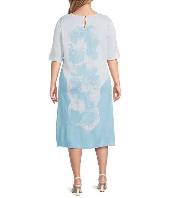 Ming Wang Plus Bold Floral Jacquard Knit Crew Neck Short Sleeve Sheath Midi Dress