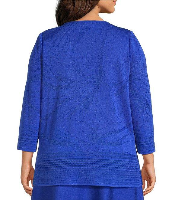 Ming Wang Plus Size Burnout Floral Knit Boat Neck Bracelet Sleeve Tunic