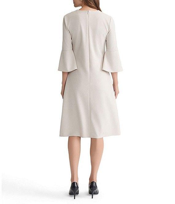 Ming Wang Stretch Crepe Floral Print V-Neck Elbow Tulip Sleeve A-Line Dress