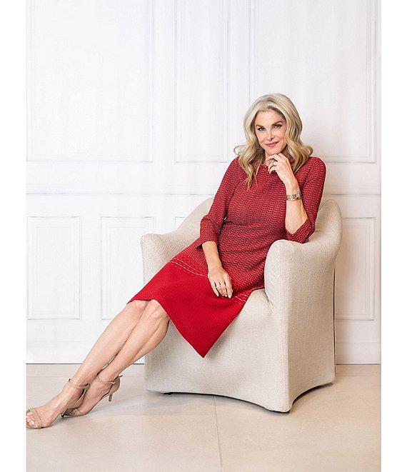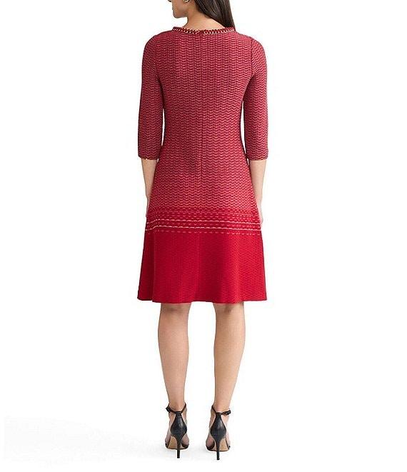 Ming Wang x Tanya Foster Ombre Knit Chain Trim Round Neck 3/4 Sleeve Dress