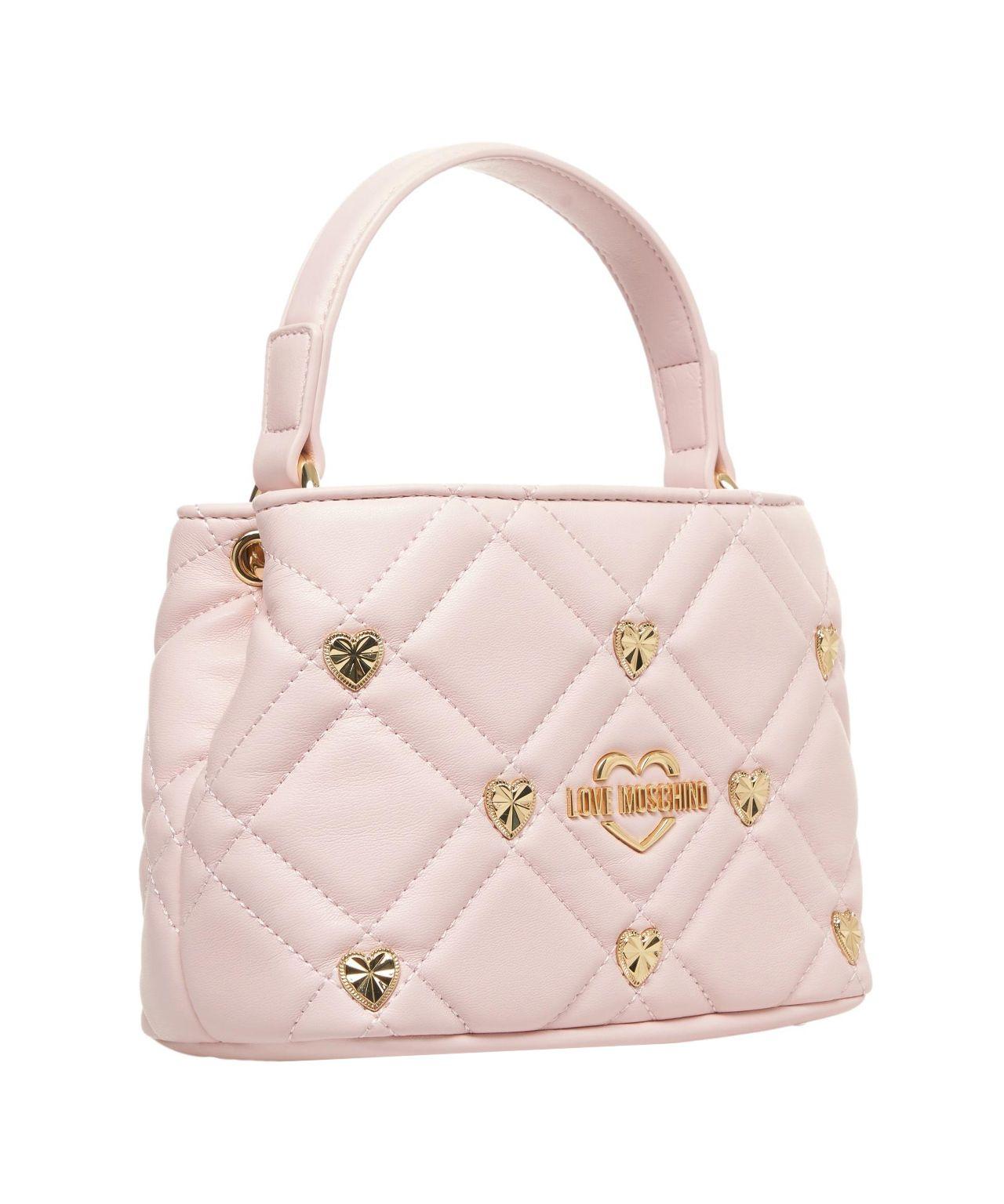 Logo typeSingle handleRemovable and adjustable shoulder strapSlit pockets insideThree inner compartmentsUnderlinedPress button closureGolden coloured metallic detailsStud detailsFaux leather
