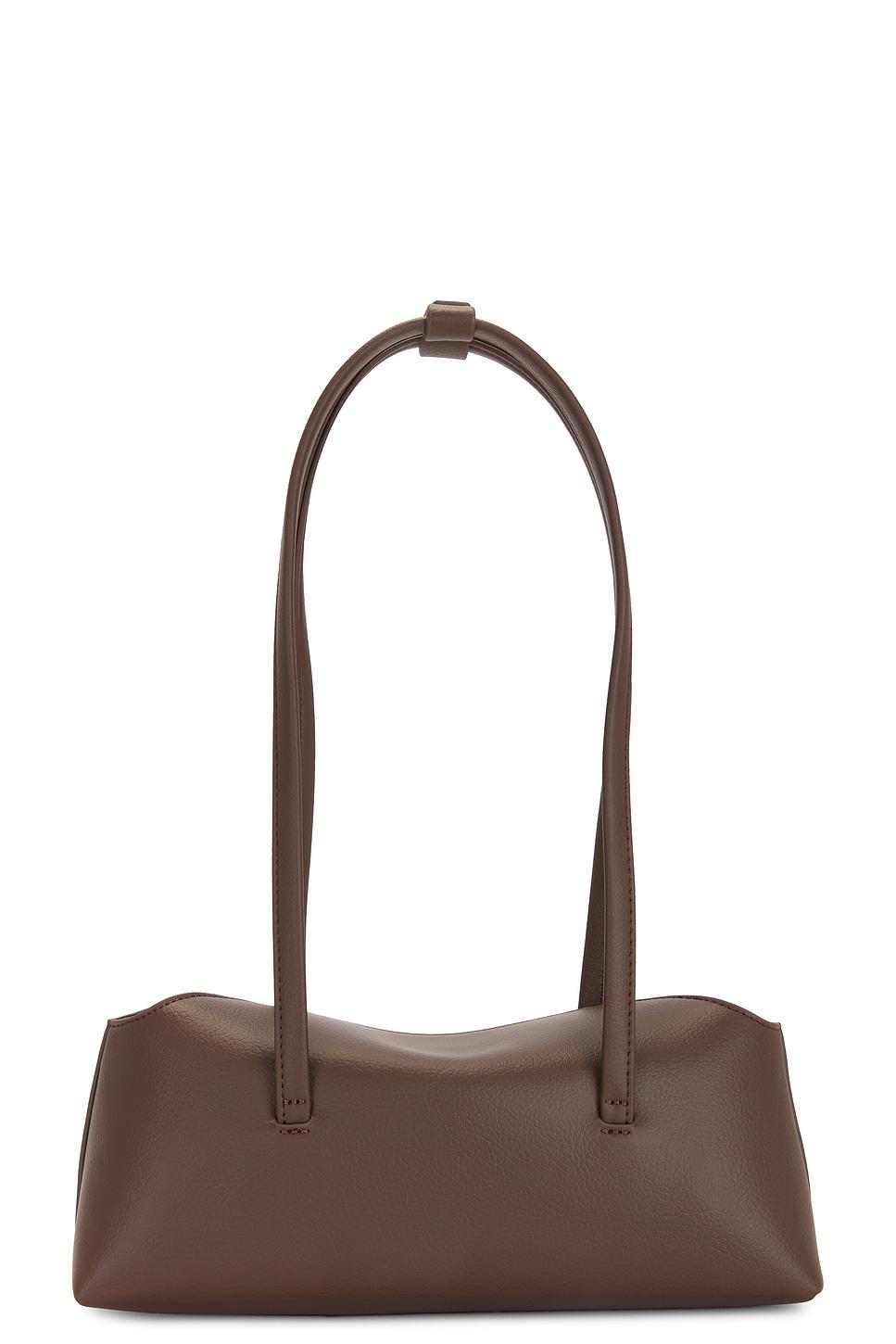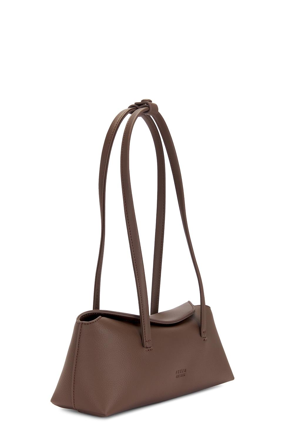 Faux leather exterior with textile lining. Made in China. Foldover top with dual magnetic button closure. One main compartment. Dual interior slip pockets. Dual shoulder straps with strap clip. Measures approx 10.75" W x 4.5" H x 3.5" DShoulder strap with a 10" drop. Revolve Style No. FNEW-WY9. Manufacturer Style No. MINI CHRYSTIE BAG.