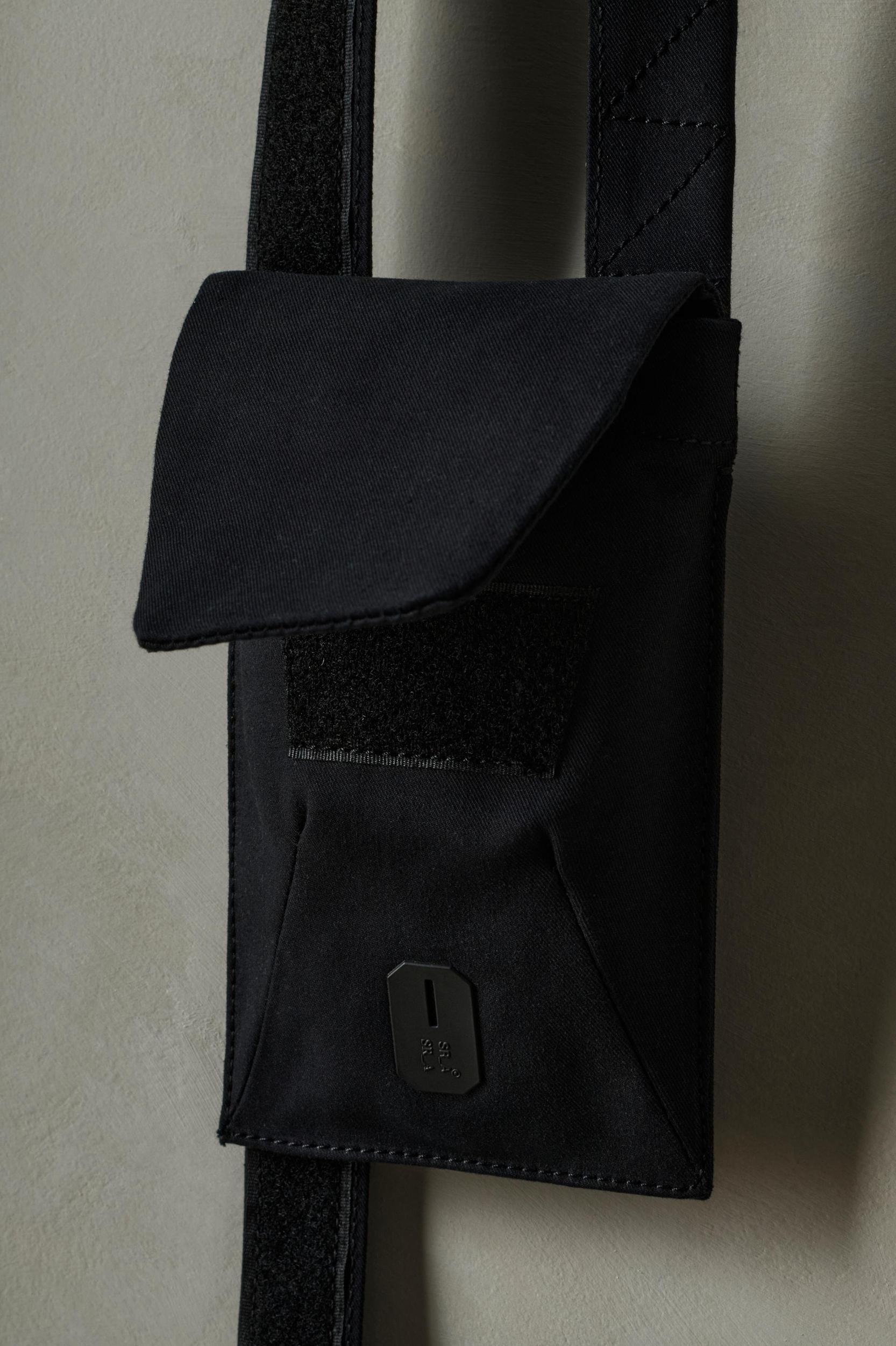 Crossbody bag made of technical fabric. Under the flap with hook-and-loop closure there is a double pocket. Adjustable shoulder strap with hook-and-loop fastener. Minimalist-inspired design.