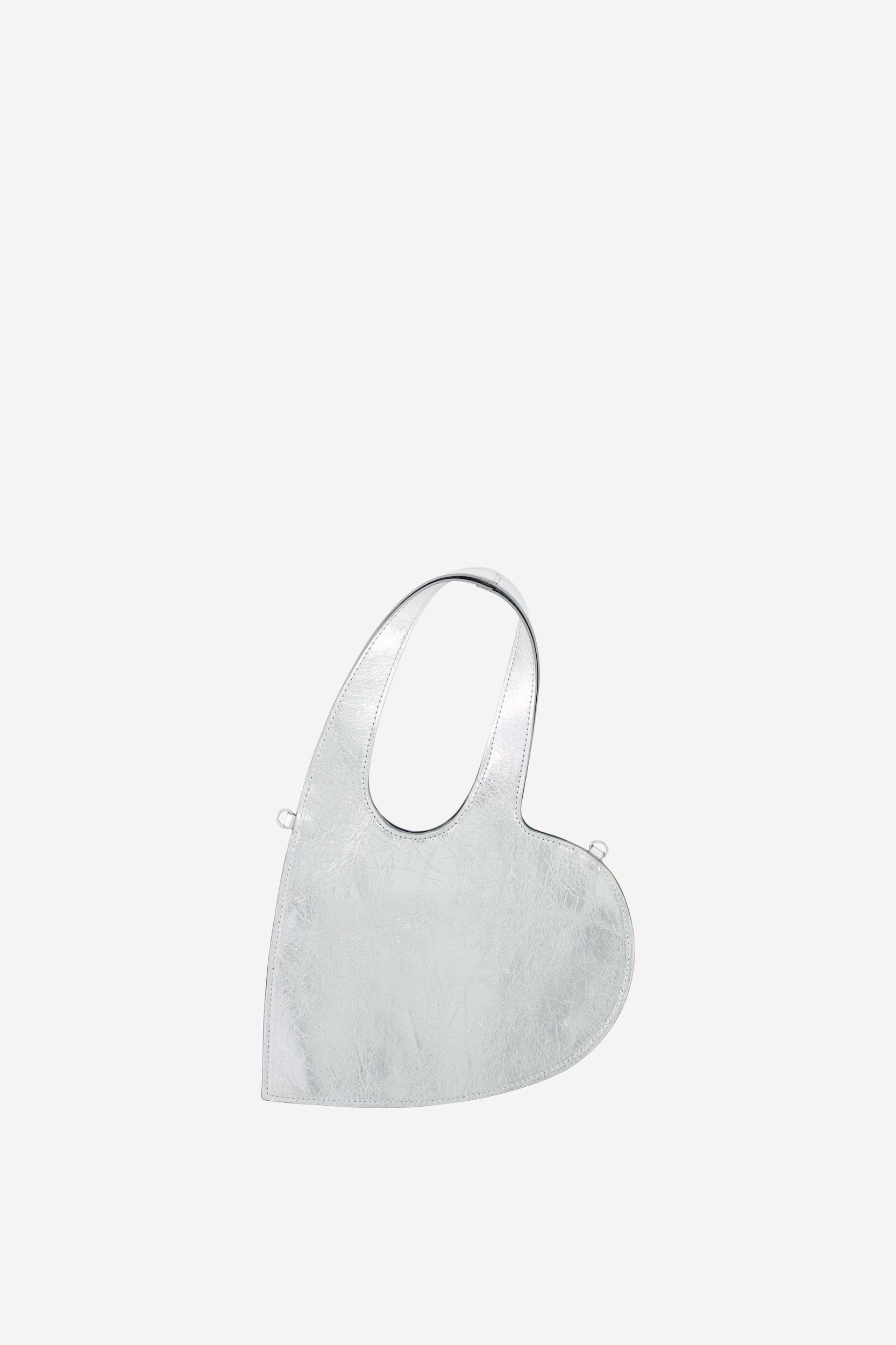Like its large parent model, the Mini Heart Tote has a charming shape that promises to dress up any style. It has a slim profile ensuring it sits comfortably at your side thanks to a detachable cross-body strap. It can also be handheld thanks to an integrated arched shoulder loop, allowing it to easily transition from casual daytime staple to sophisticated evening bag. In this case, the mirrored silver material shines bright in all lighting, making it the perfect cross-seasonal accessory.