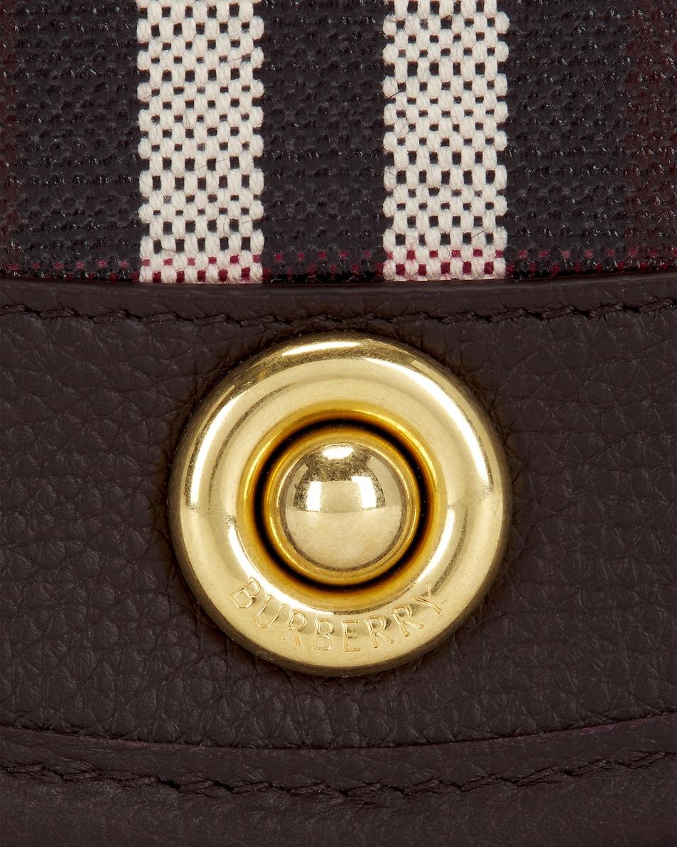 bagJacquard exterior with calfskin leather trim and gold-tone hardwareCanvas lining / Magnetic push-button flap closure / One main compartment / Two interior credit card slots / Detachable and adjustable shoulder strap / Measures approx 9.1" W x 7.1" H x 3.2" DShoulder strap with a 16.5-20.9" dropTop handle with a 3.5" drop / Made in Italy / Our Style No. BURF-WY270 / Manufacturer Style No. 8114721 / Model is wearing size all.