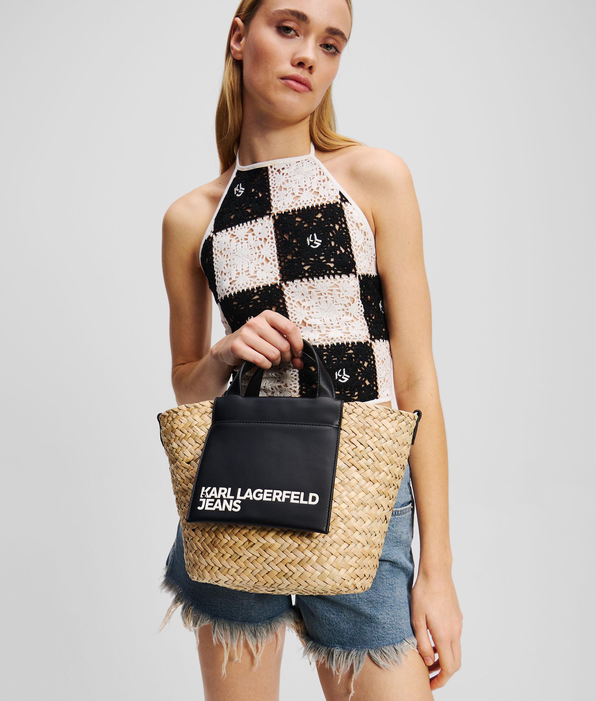 A summery raffia fabrication gives this beautiful tote bag a bespoke handcrafted feel. The detachable canvas pouch with a zip-top closure provides versatile storage for your essentials, while contrasting top handles and a bold KARL LAGERFELD JEANS logo bring the brand's signature style. Adapt yours to any outfit or occasion with the adjustable and detachable strap.