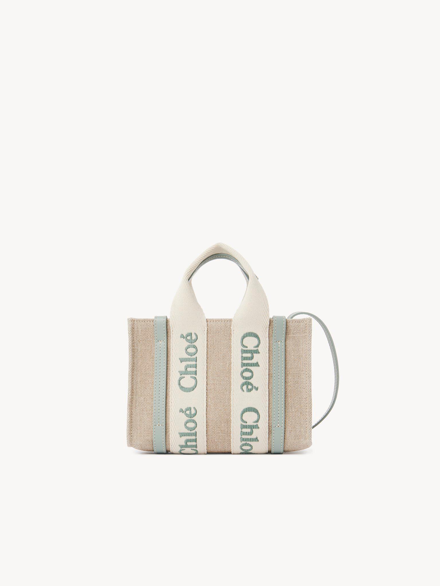Mini Woody tote bag in linen & leather