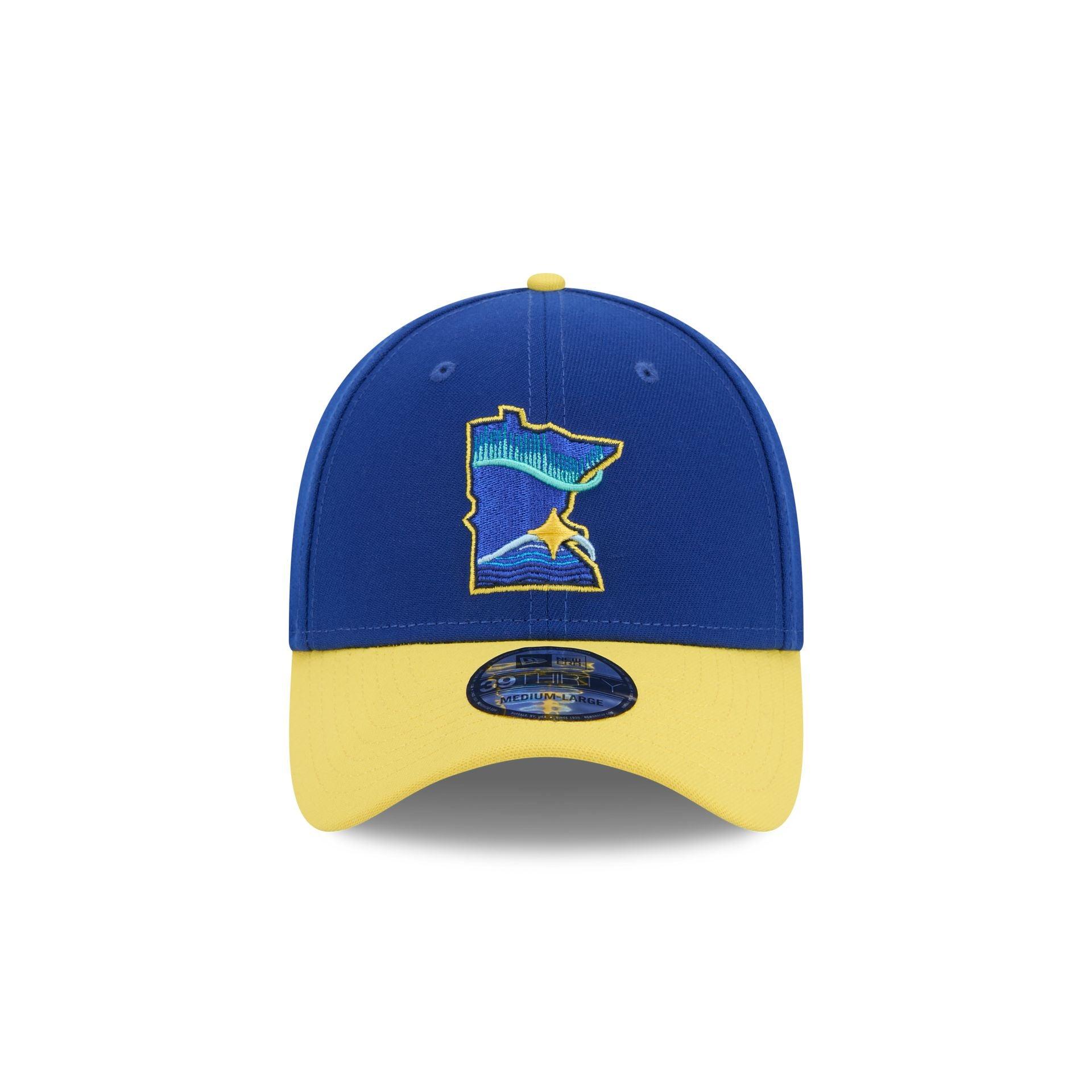 The Minnesota Twins City Connect 39THIRTY Stretch Fit Cap draws originality from unique elements tied to the surrounding city and features an embroidered Twins logo at the front panels with matching accents including a 10000 Lakes wordmark at the rear and a patterned undervisor.