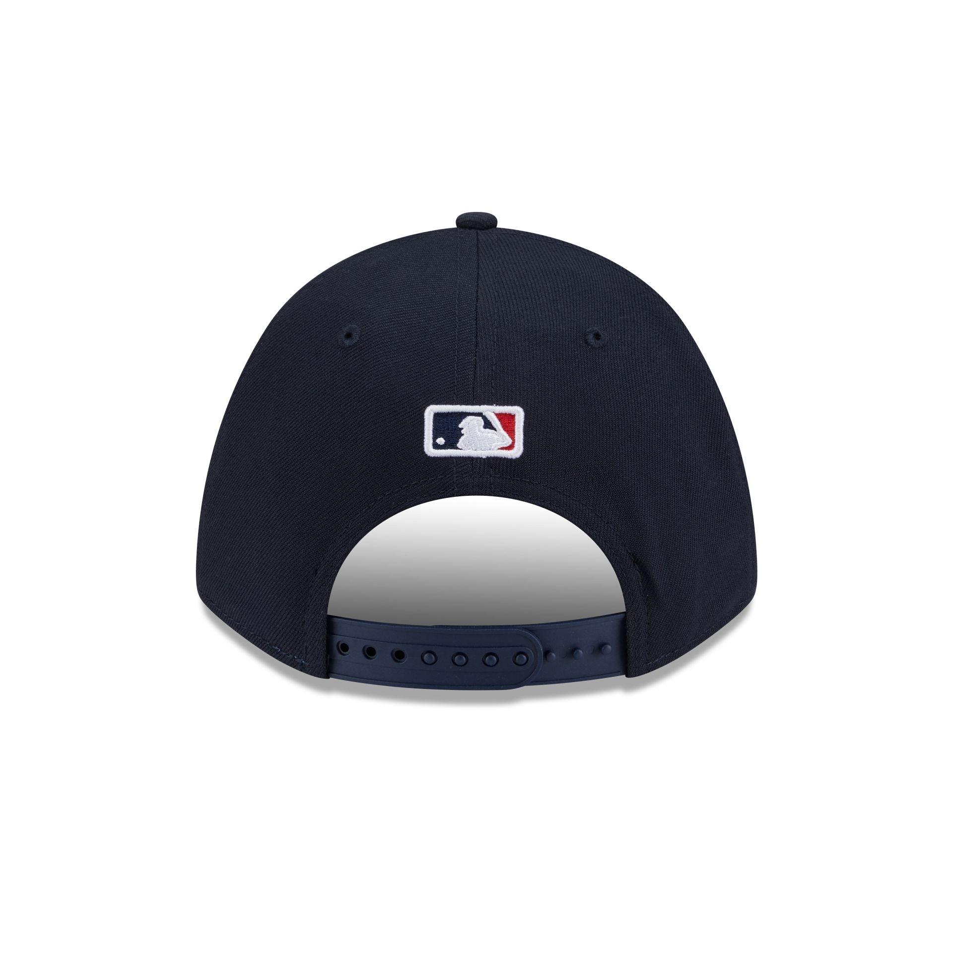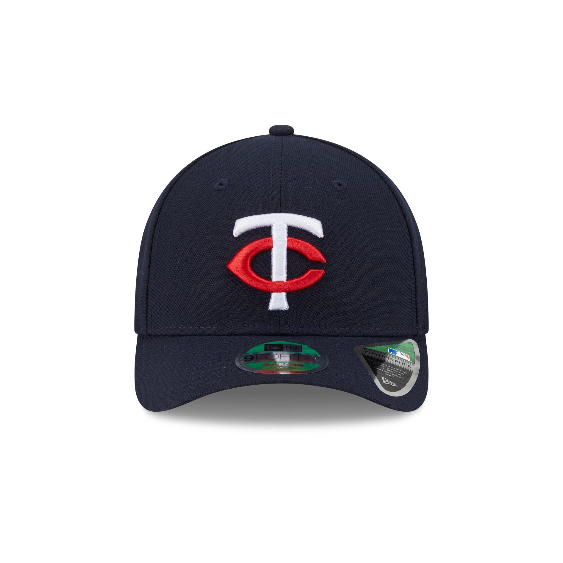 The Minnesota Twins Home 9FORTY M-Crown Snapback features an embroidered Twins logo at the front panels with a matching MLB Batterman logo above a snapback closure at the rear and a black undervisor.