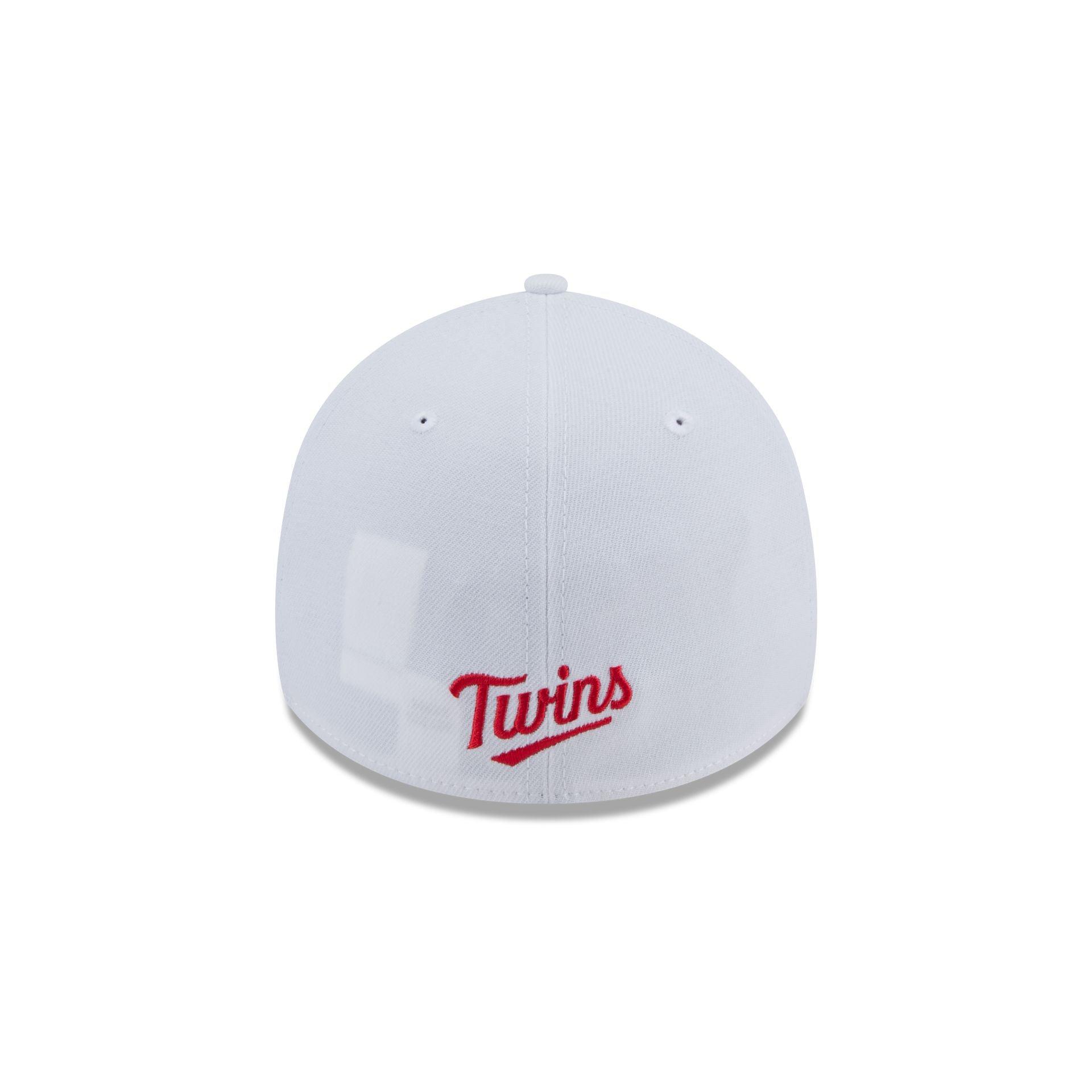 The Minnesota Twins Optic White 39THIRTY Stretch Fit Hat features an embroidered Twins logo at the front panels with a matching team wordmark at the rear and a white undervisor.