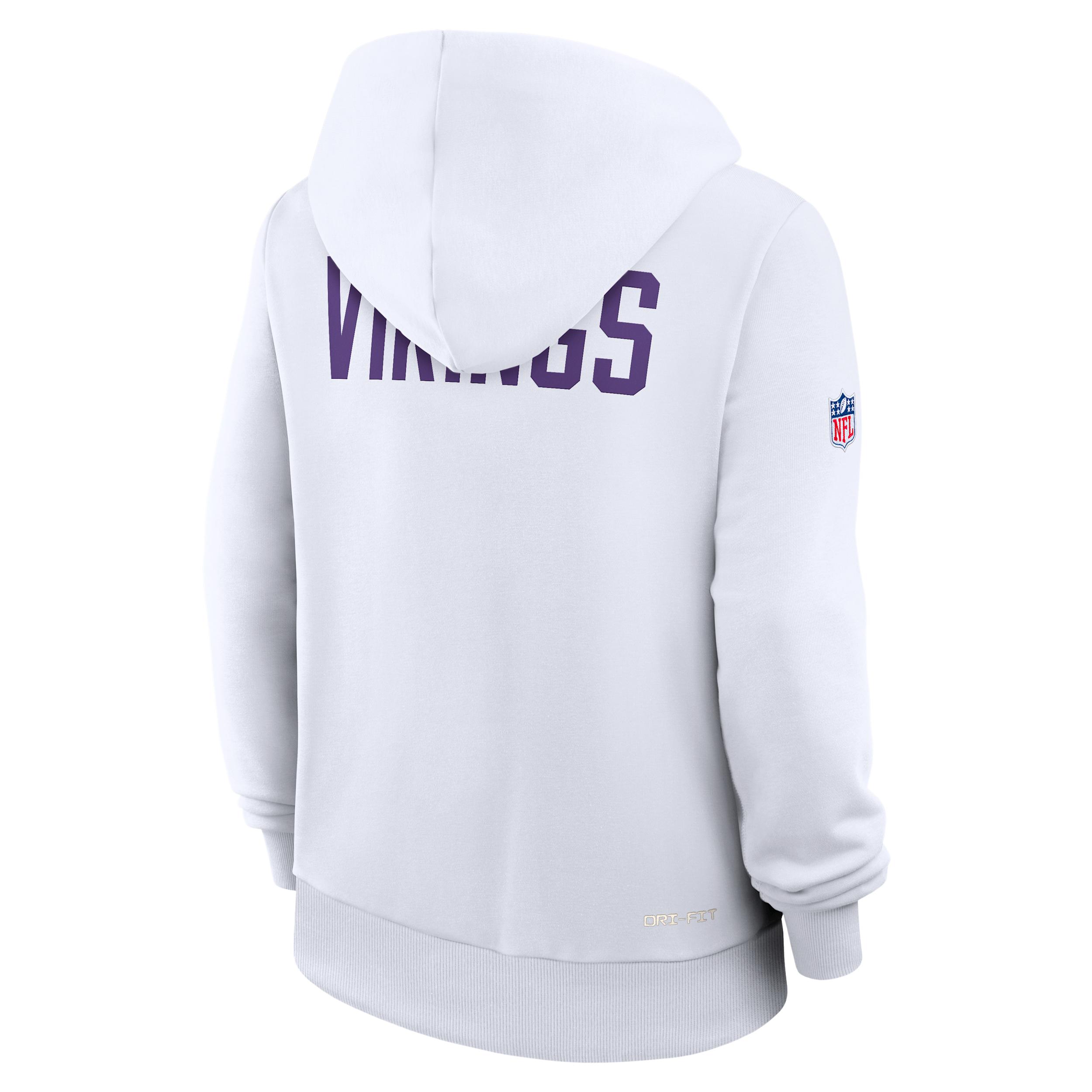 Featuring bold team graphics, this Alt 2 Pack Hoodie combines sweat-wicking technology with a soft fleece lining to help you comfortably support the Minnesota Vikings in cooler weather. Benefits:Nike Dri-FIT technology moves sweat away from your skin for quicker evaporation, helping you stay dry and comfortable. Dolman sleeves help increase range of motion with a roomy fit under the arms. [] Product Details:Hood with drawstring. Front pocket. Zippered pocket at right side. 53% polyester/47% cotton. Machine wash. Imported. Style: 03C310A9M; Color: White; Size: S; Gender: Female; Age Group: Adult | Minnesota Vikings Alt 2 Pack Women's Nike Dri-FIT NFL Pullover Hoodie in White, Size: Small | 03C310A9M-A7L