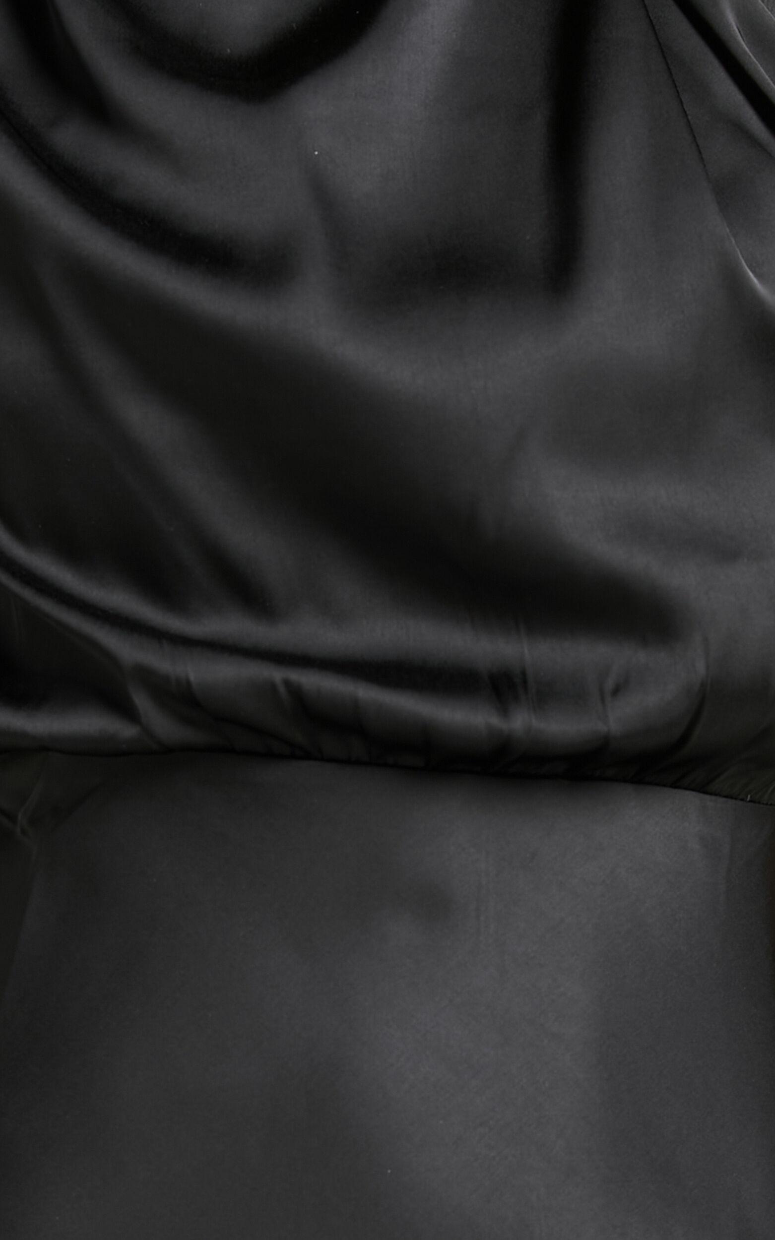 Be your most elegant self this event season in our Minnie Dress! This satin-look midi has a loosely fitted bodice with a high neck and soft, sensuous draping. Finished with a figure-skimming slip skirt, it's made to be seen at your next party, wedding, formal or other special event. Style it with strappy heels and understated jewellery for a divine look!Product Details Invisible centre back zipMock neckline with button fasteningAsymmetrical sleeveless bodiceDraped fabric on bodiceSlip skirtPartially lined - lined in bodice onlyNo pocketsSize & FitSize S / 8 length: 127cm / 50inStudio model is wearing size XS / 6 AU / 2 US / 6 UK / 34 EUStudio model's height is 173cm / 5'8"Material & CareMade with 100% polyester, low stretchCold hand wash only, cool iron, do not soak, do not tumble dry