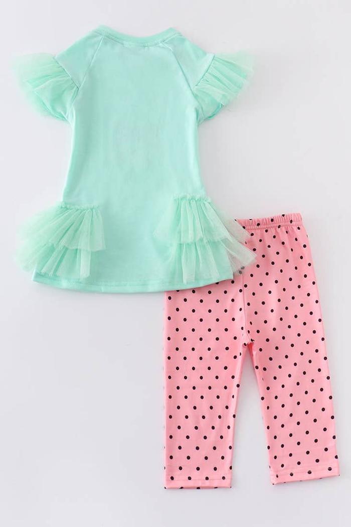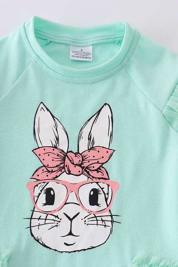 Mint rabbit print ruffle girl set 27.9%cotton65.1%polyester7%spandex/combo:100%polyester