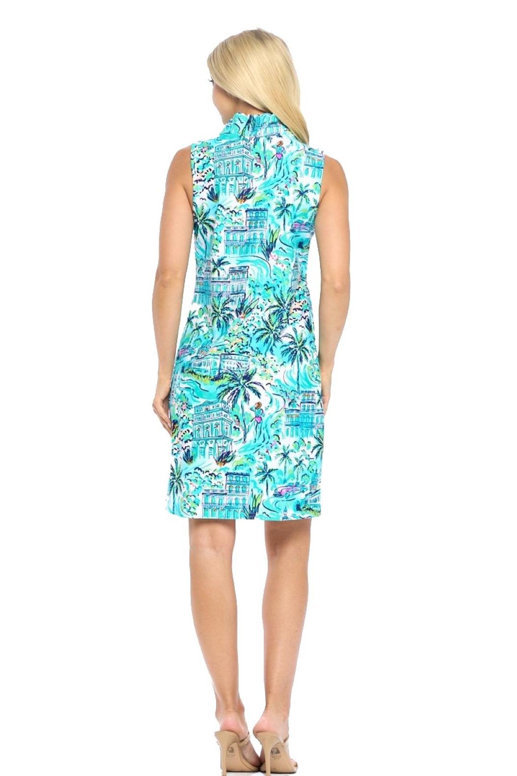 Mint Ruffle Neckline Dress