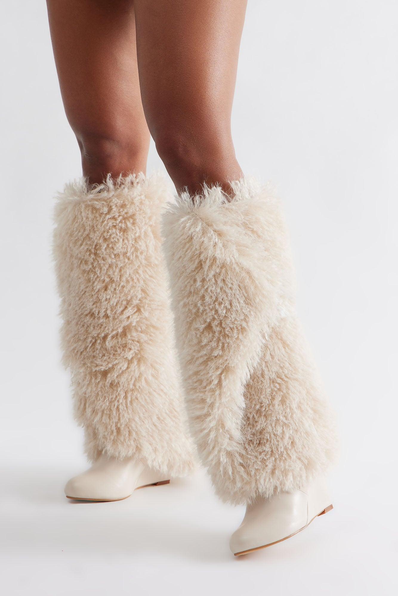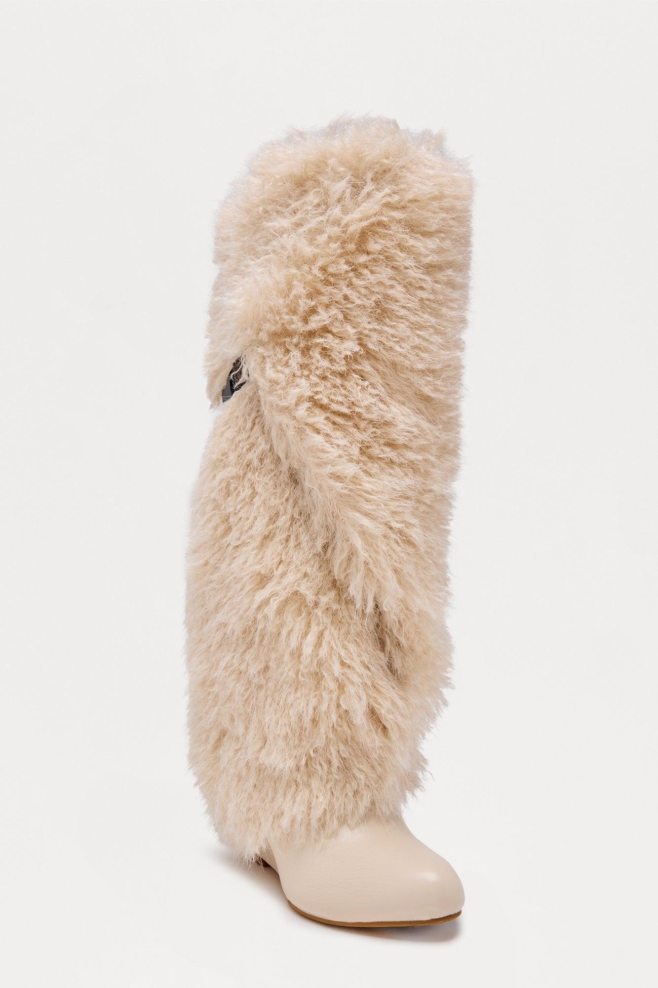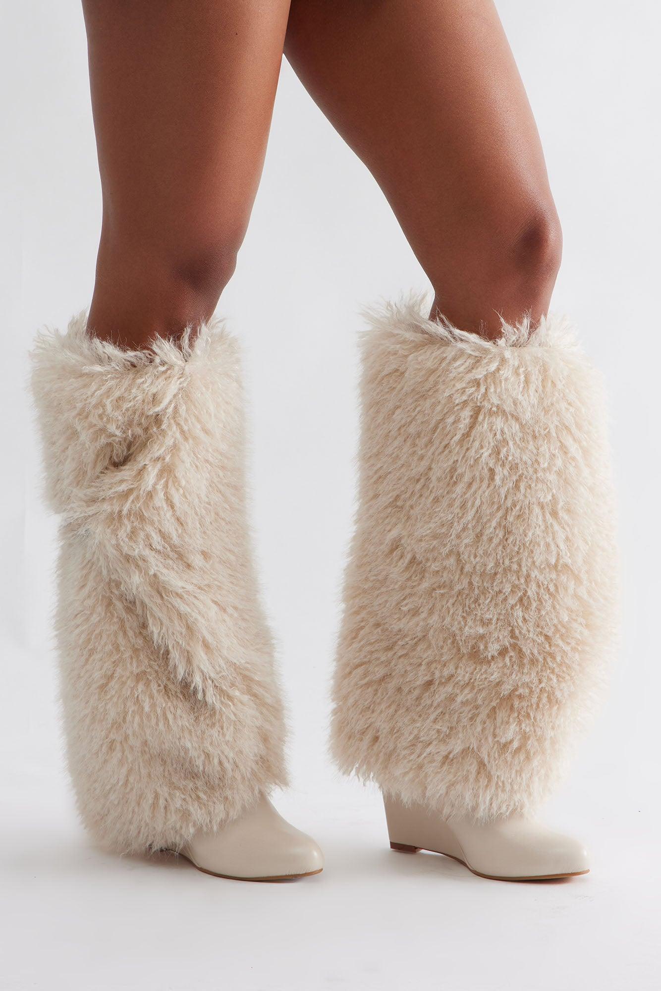 Mio Faux Fur Overlay Boots - Beige Female