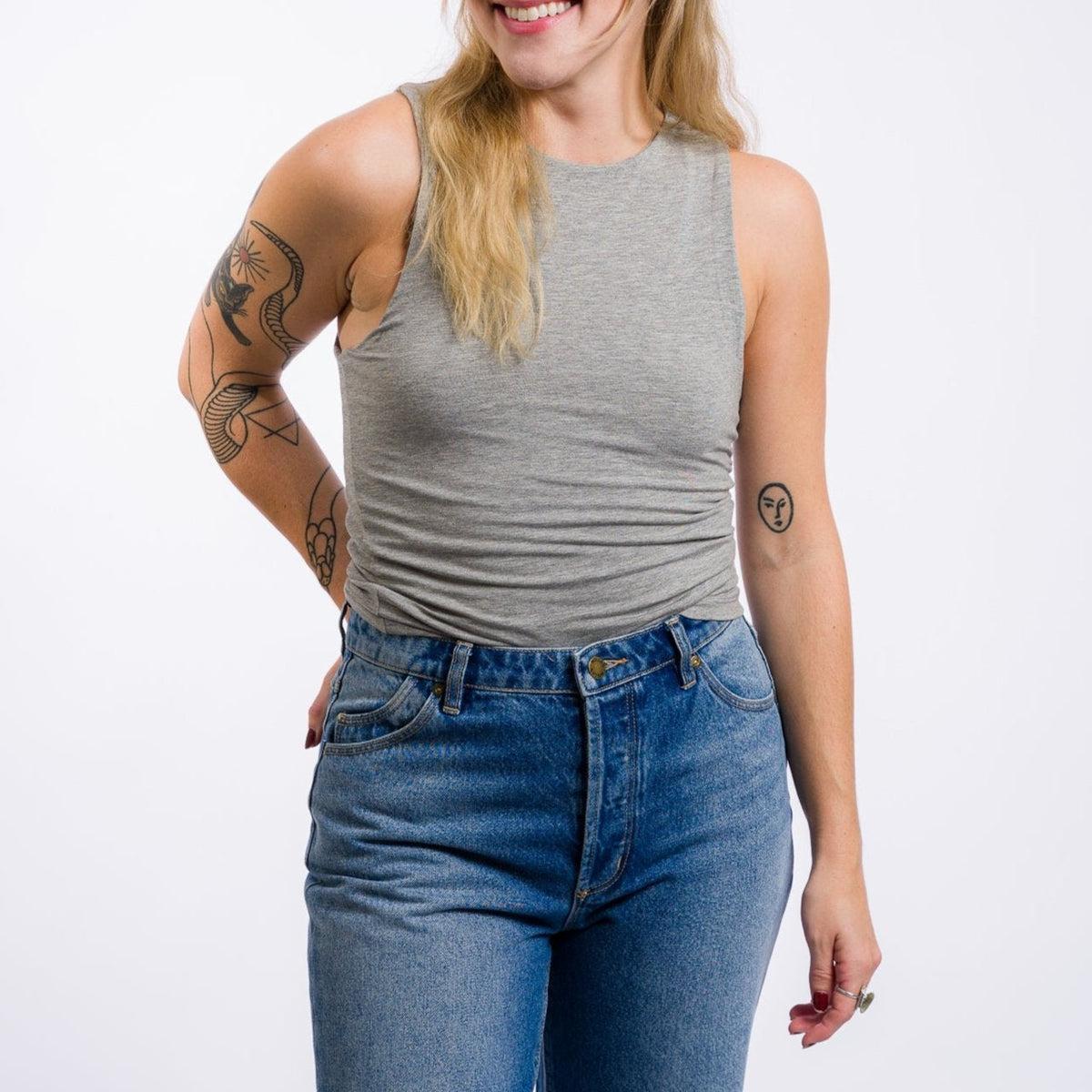 Miou Muse Double Layered High Neck Tank Top - Light Grey