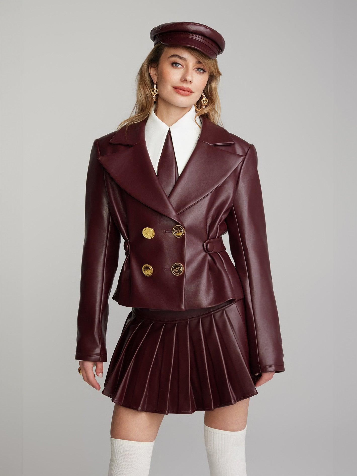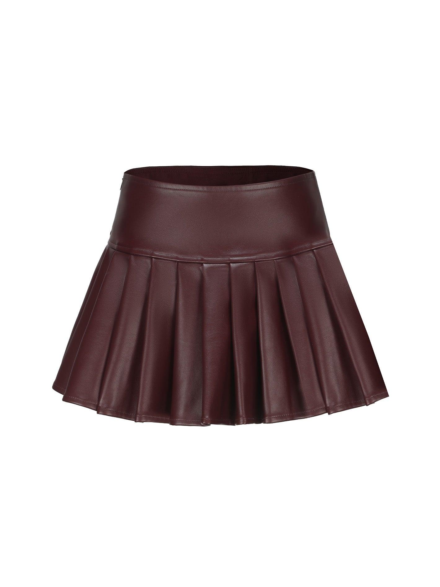 Your new favorite: The Mirabel Faux Leather Skirt. Crafted from environmentally friendly leather material, this skirt boasts a delicate and soft feel against the skin. With an open zipper on the side for easy wear, the uniform and full pleated design exudes a casual agility, perfectly blending fashion-forward waist style for a classic cool and spicy American campus look. Faux leather Zipper included Safety shorts included underneath Dry clean only