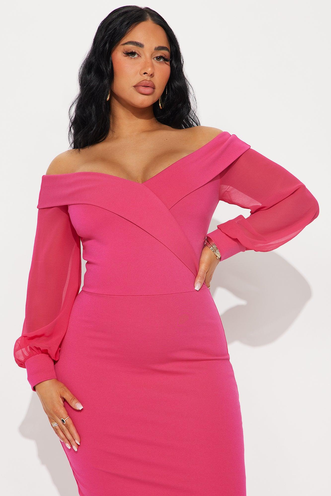 Mirabella Off Shoulder Midi Dress - Fuchsia