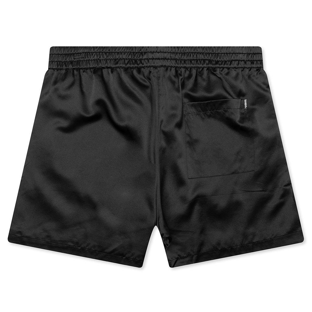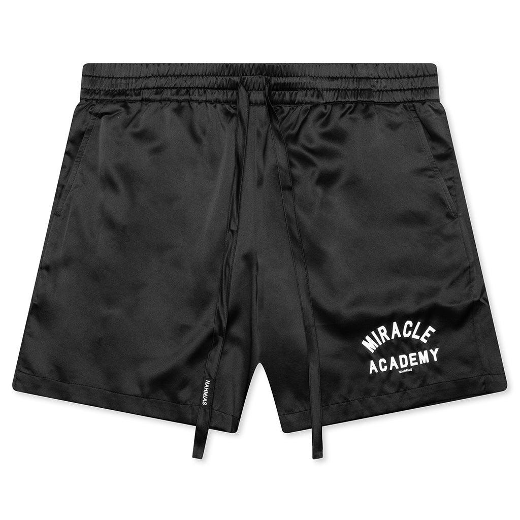 Make a statement in your next outfit with the Nahmias Miracle Academy Silk Shorts. Featuring a silk and elastane construction, the design features printed branding at the legs. The elastic drawcord waistband and side pockets finish up the design. 95% Silk/5% Elastane Nahmias drawcord Side pockets Back welt pocket Elastic waistband Printed branding Style No: W16-R1G32-001