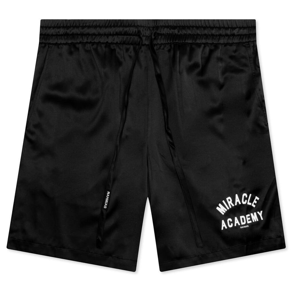 Elevate your wardrobe with the Nahmias Miracle Academy Silk Shorts. Made from silk and cotton, the shorts feature an elastic drawcord waistband as well as side pockets for a functional touch. The printed branding at the front wraps up the remainder of the look. Silk/cotton blend Elastic drawcord waistband Printed logo branding Side pockets Style No: AW23-W16-ST1G32-001