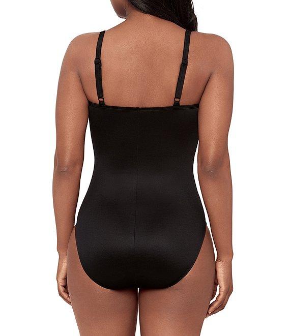 From Miraclesuit, this one piece swimsuit features: Tank silhouette Leaf tree print Scoop neckline Hidden underwire Adjustable straps Miratex fabric provides all-over body control, shapes and slims Cleverly draped fabric conceals tummy Moderate coverage Lined Pull-on construction Nylon/spandex Hand wash Imported.