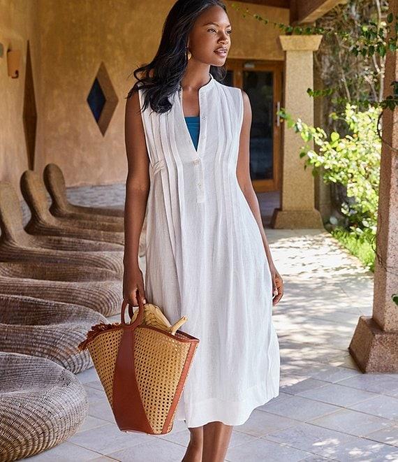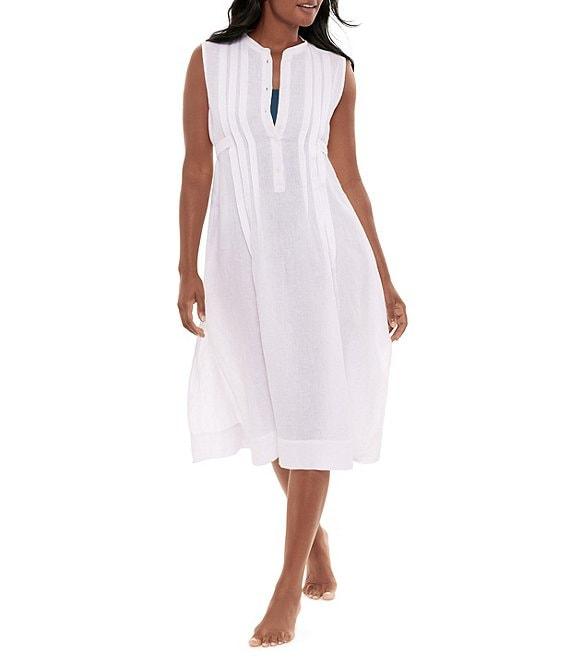 Miraclesuit Pleated Sleeveless Button Front Beach Dress Swim Cover-Up