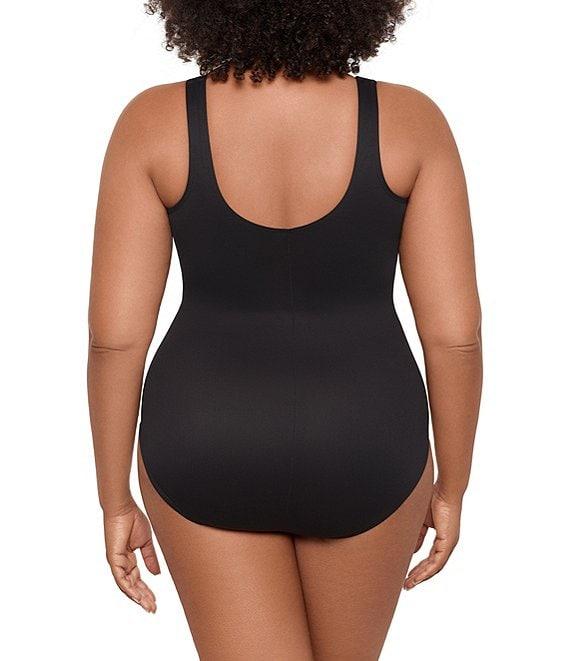 From Miraclesuit Plus, this one piece swimsuit features: Tank silhouette Sweetheart neckline Molded cups Underwire bra Fixed padded straps Front keyhole detail Miratex fabric provides all-over body control, shapes and slims Cleverly draped fabric conceals tummy Scoop back Moderate coverage Lined Pull-on construction Nylon/spandex Hand wash Imported.