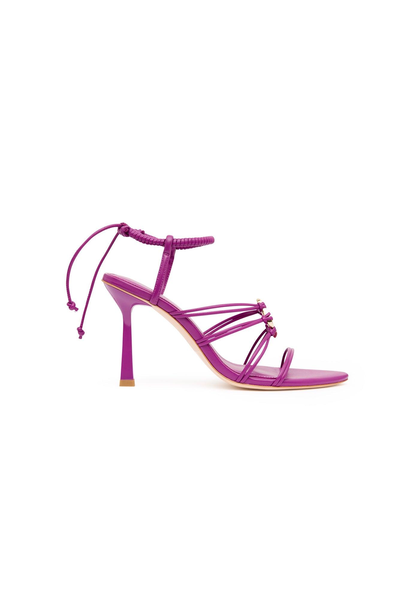 PRODUCT DETAILS Strappy heel Pointed toe Sculptural ring detail at forefoot Tie fastening at ankle Shop All Footwear SIZE AND FIT Heel Height: 9.5cm FABRICATION 100% Genuine Leather Wipe down with damp cloth