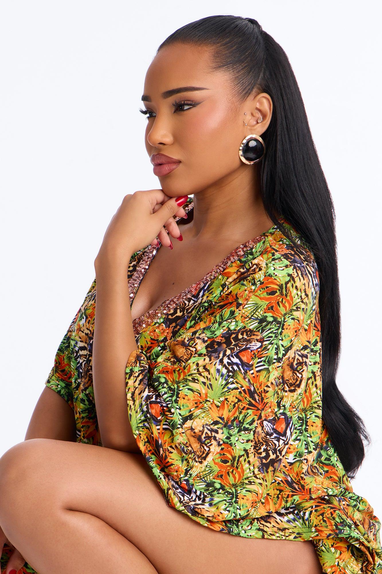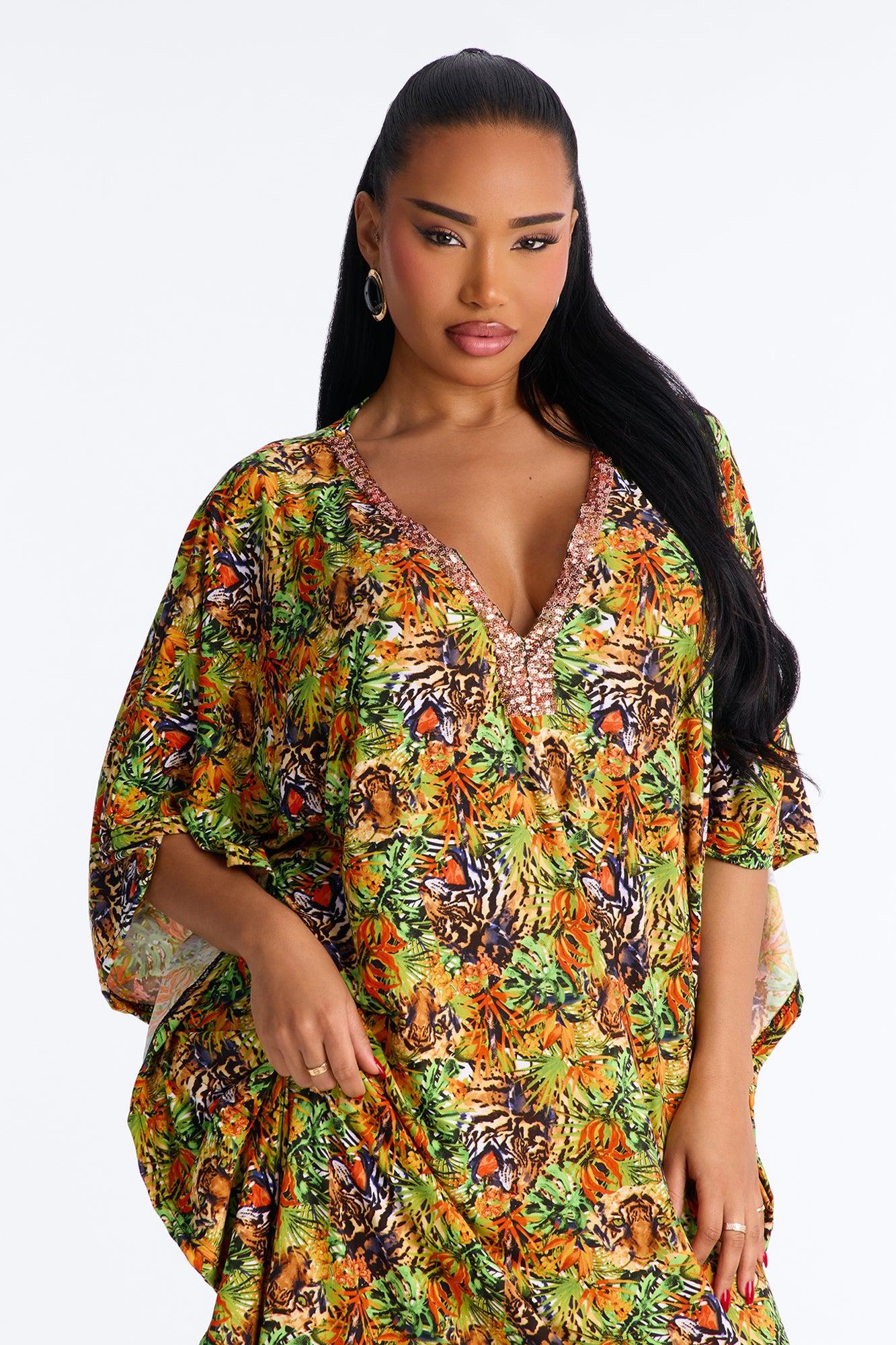 Mirage Pool Sequins Cover Up Maxi Kaftan - Green/combo Female