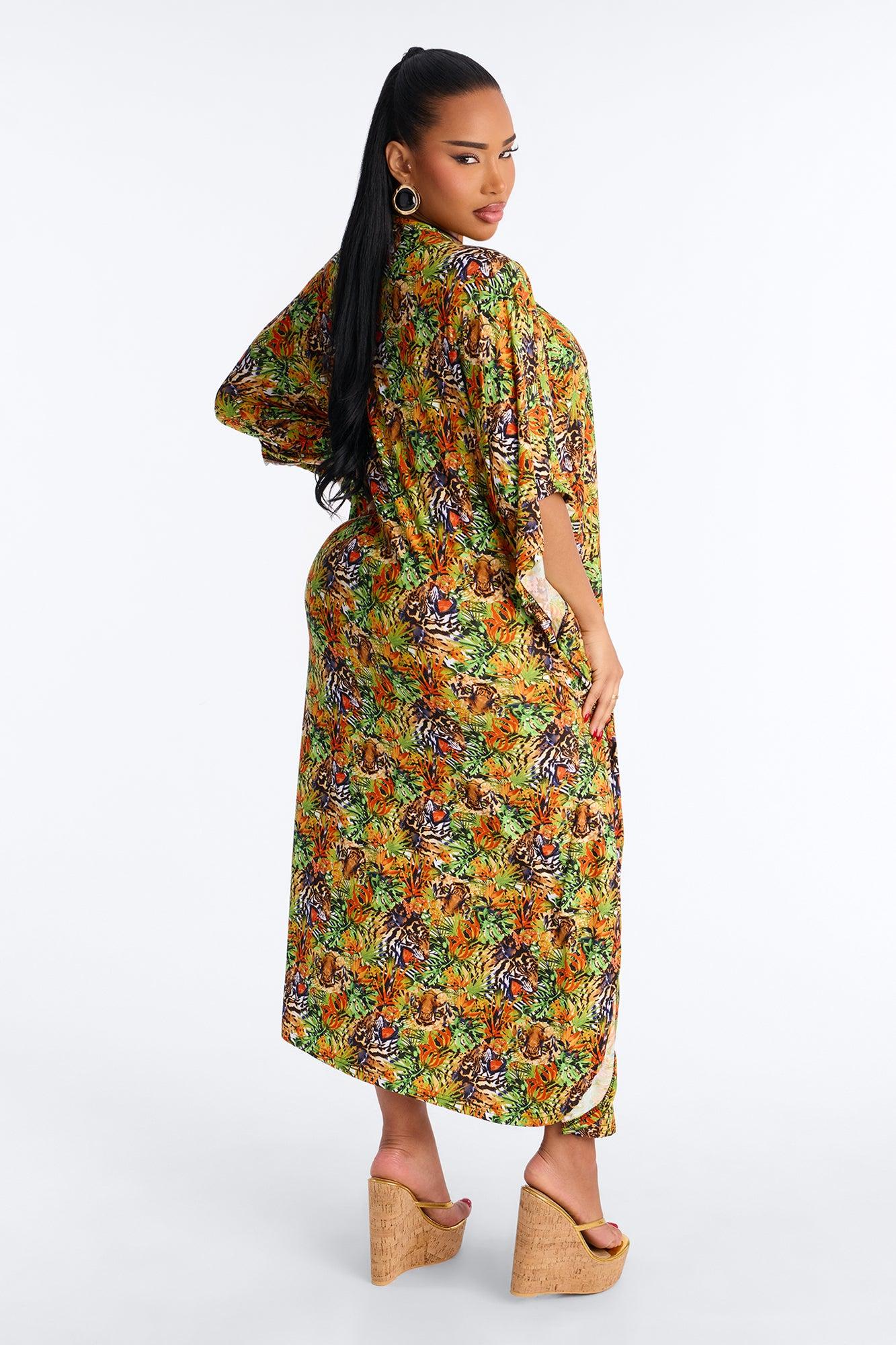Mirage Pool Sequins Cover Up Maxi Kaftan - Green/combo Female Product Image