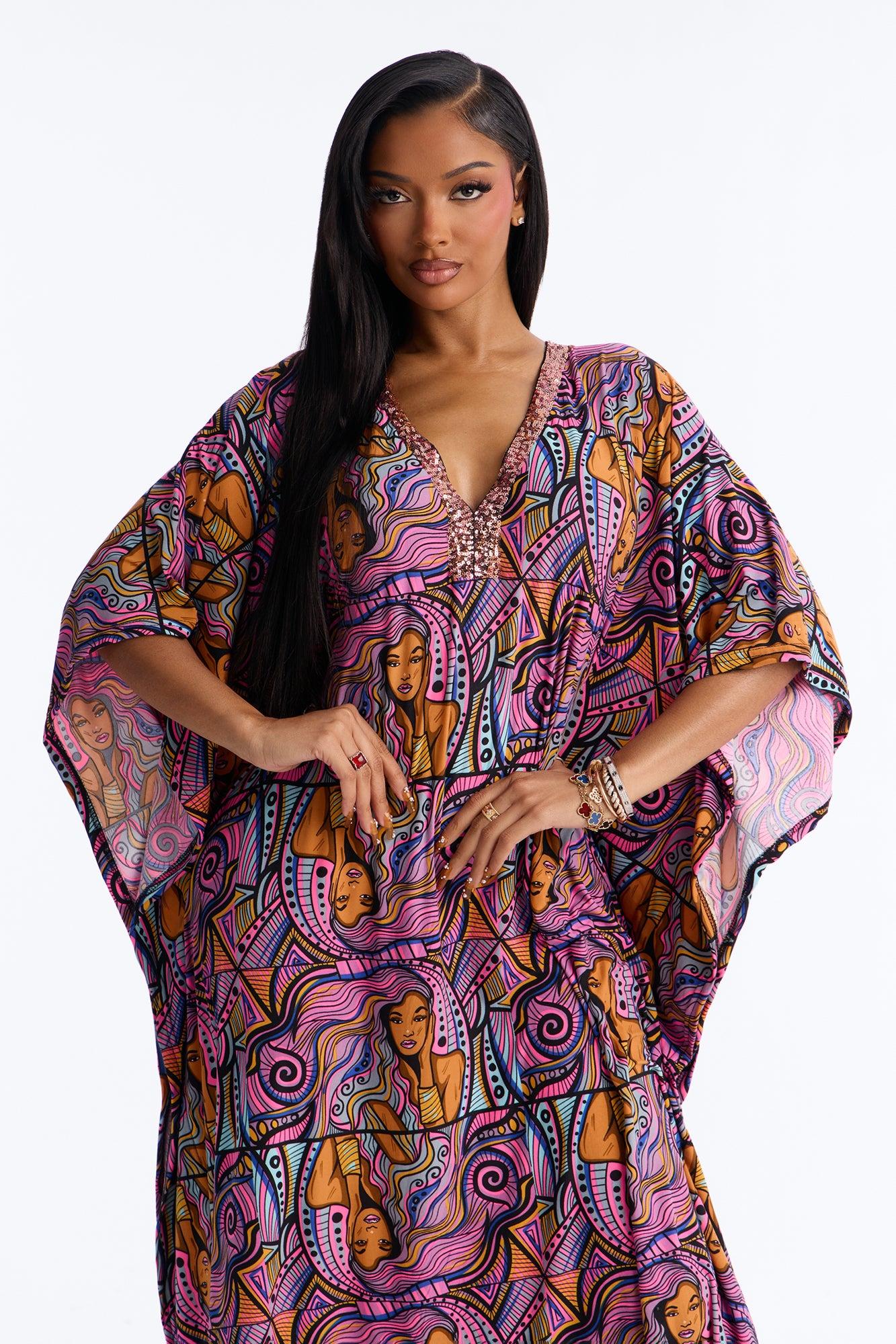 Mirage Pool Sequins Cover Up Maxi Kaftan - Pink/combo Female Product Image
