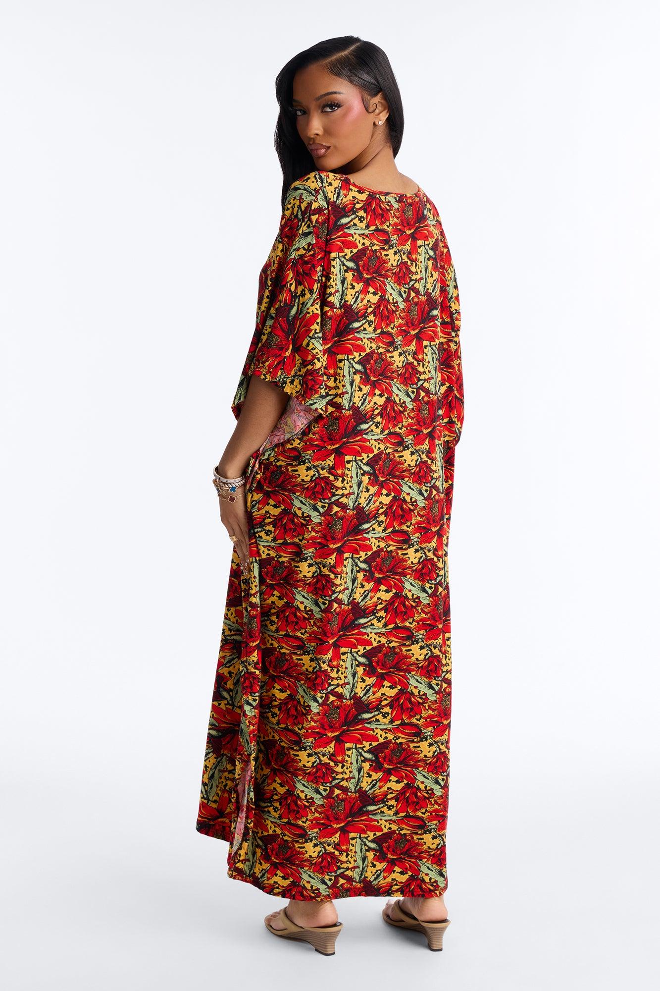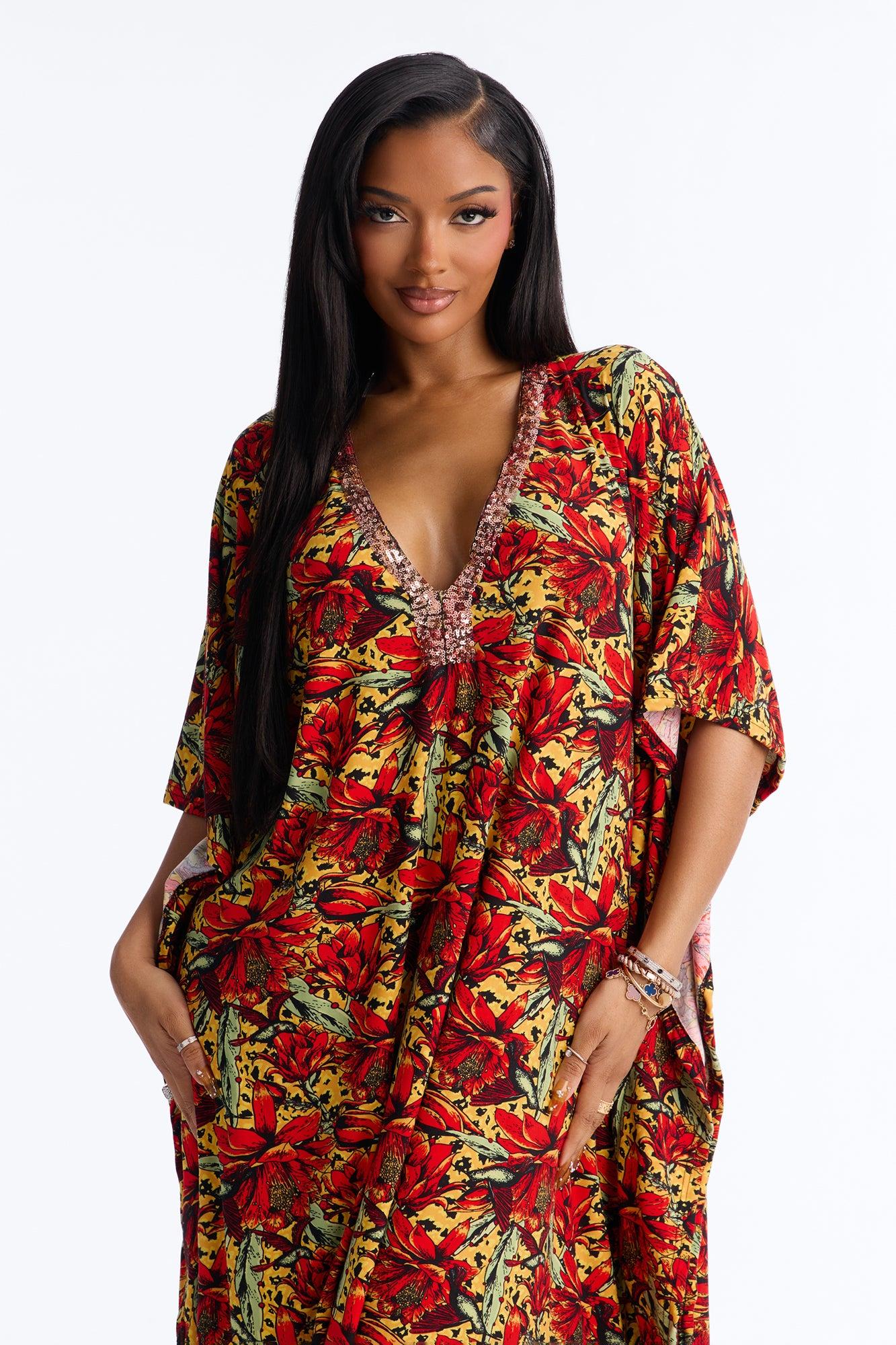 Mirage Pool Sequins Cover Up Maxi Kaftan - Red/combo Female Product Image