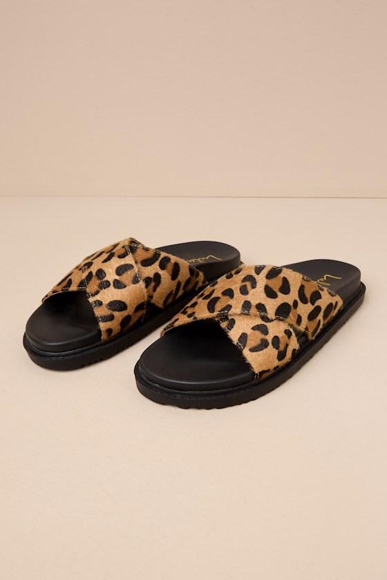 The Lulus Mirah Leopard Faux Fur Flatform Slide Sandals are simply a wardrobe must-have for last minute OOTDs! These stylish sandals feature an almond-shaped footbed and wide, faux fur leopard print straps that create a crisscrossing vamp. Comfy, contoured insole tops a flatform silhouette with a slide-on design for effortless styling. Available in whole sizes only.