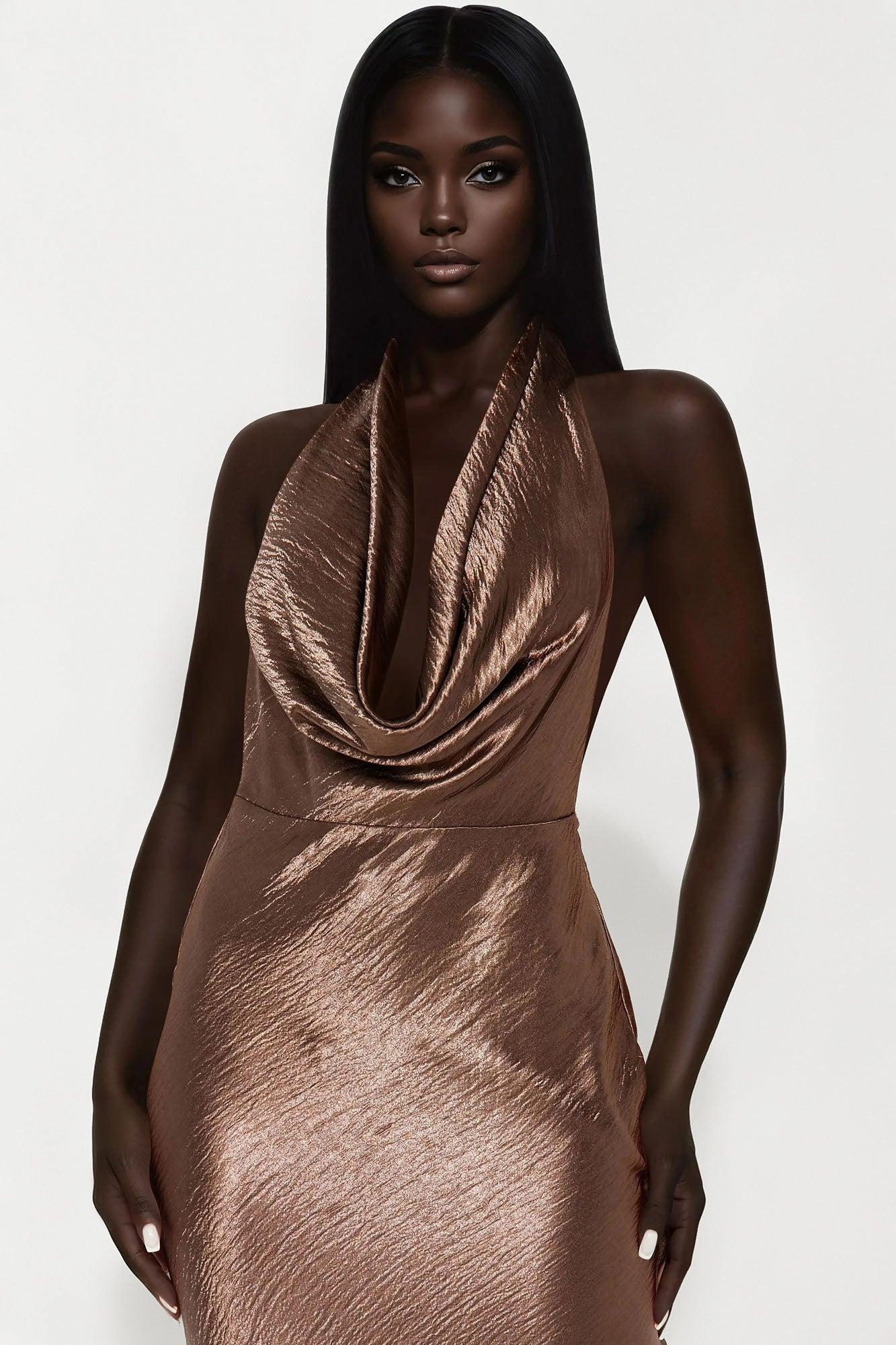 Miranda Satin Maxi Dress - Brown Female