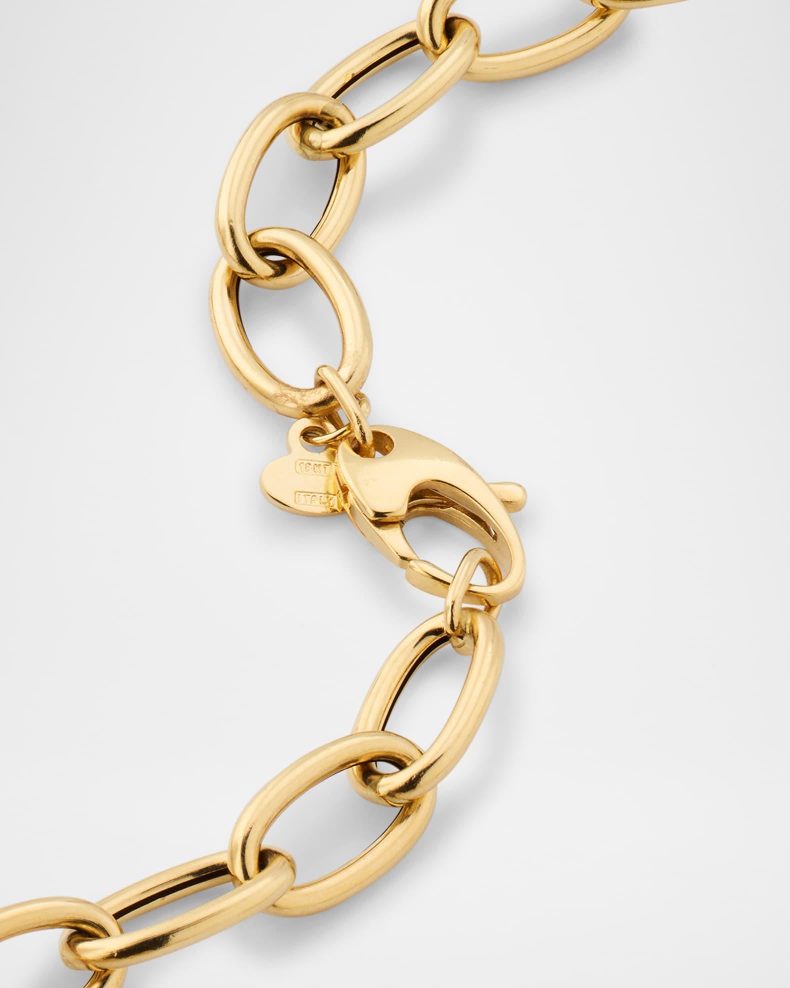 A smooth lemon quartz cabochon hangs from this Goshwara Mischief necklace. Necklace length: approx. 18 inches Polished 18-karat yellow gold 26mm round lemon quartz Total carat weight: 57.68 Lobster clasp Easily clean with soap and water Imported