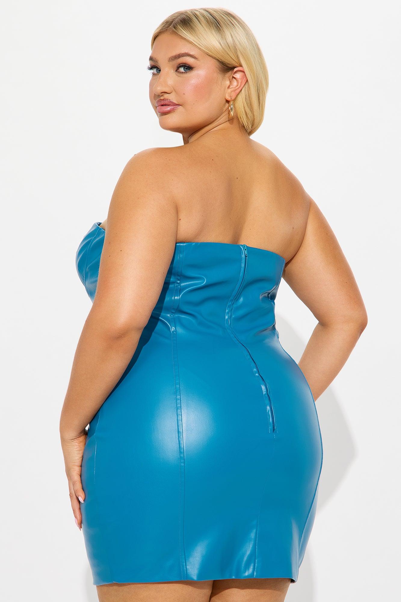 Available In Fuchsia And Teal. Faux Leather Mini Dress Strapless Straight Neckline Underwire Zipper Stretch Length Measured Flat = 25" Self: 50% Polyurethane 50% Polyester Lining: 100% Polyester Imported California Proposition 65WARNING: Cancer and Reproductive Harm - www.P65Warnings.ca.gov.