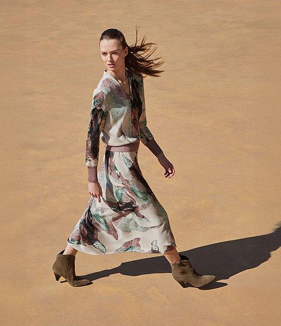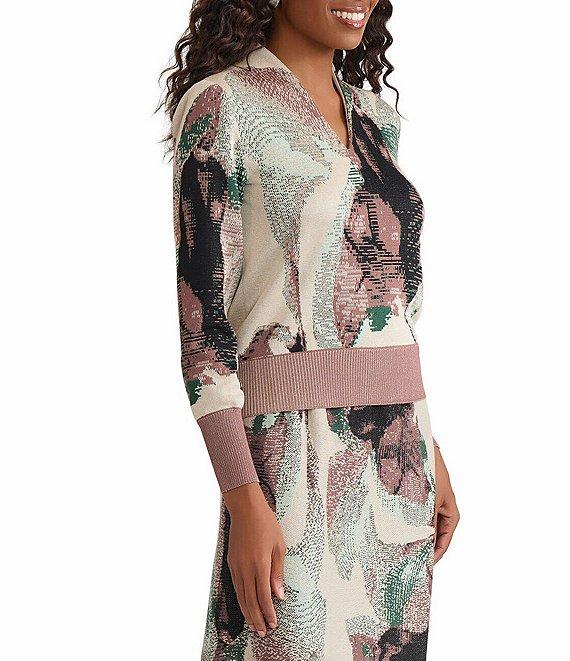 MISOOK Abstract Jacquard Soft Knit V-Neck Long Sleeve Coordinating Sweater