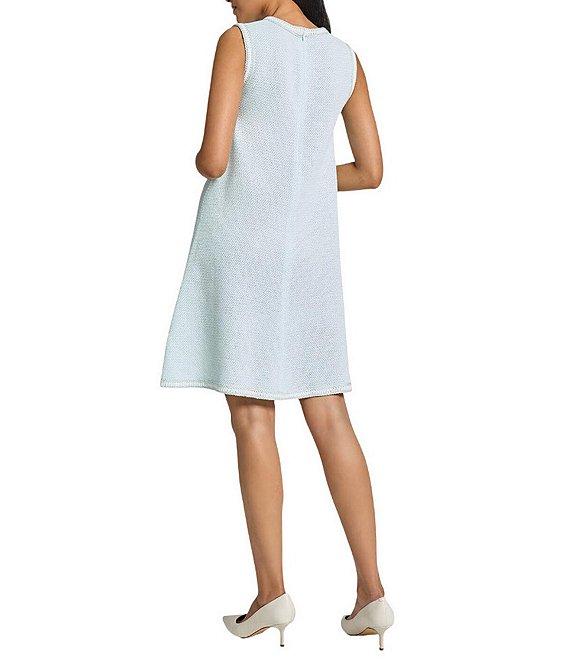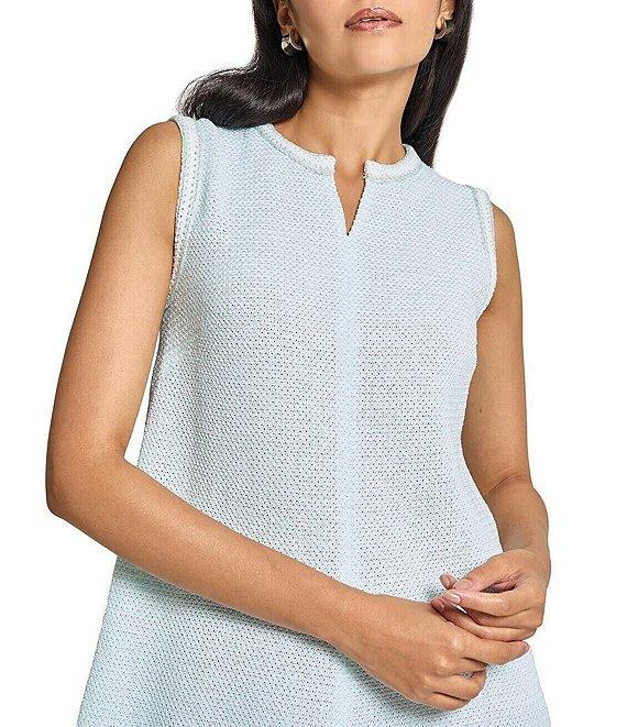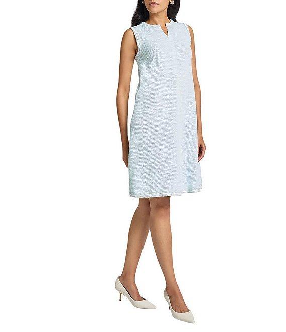 From MISOOK, this dress features: Tweed knit fabrication Crochet trim Split v-neckline Sleeveless A-line silhouette Straight hem Pullover construction Approx. 36" length Acrylic/polyester/nylon/rayon; trim: acrylic/polyester Hand wash Imported.