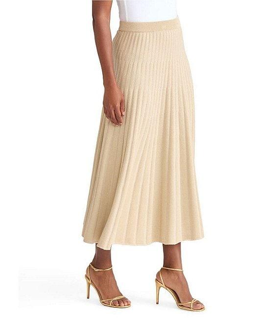 MISOOK Lurex Ribbed Knit Pleated A-Line Midi Dress
