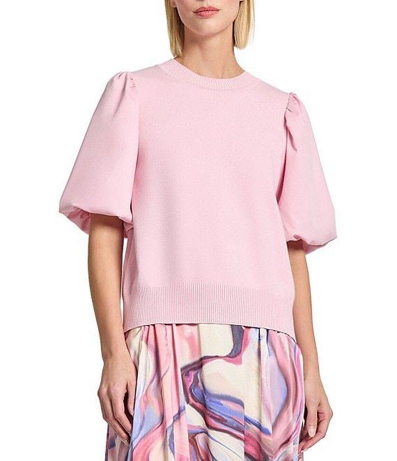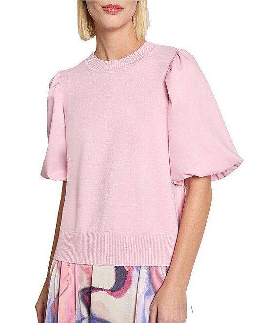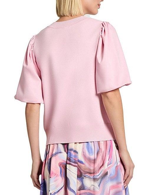 MISOOK Mix Media Round Neck Puff Sleeve Top