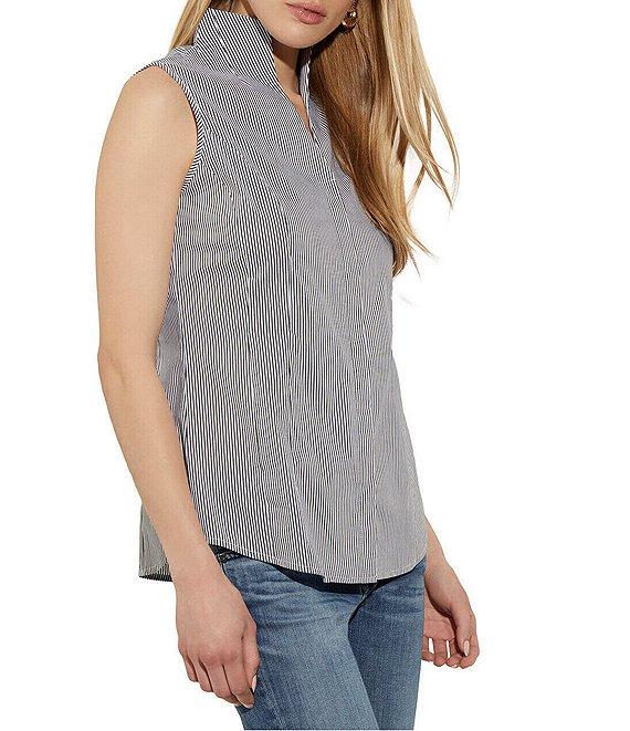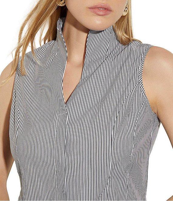 MISOOK Pinstripe Stretch Cotton High V-Neck Sleeveless Blouse
