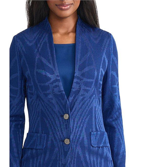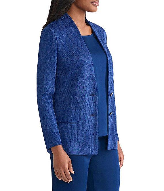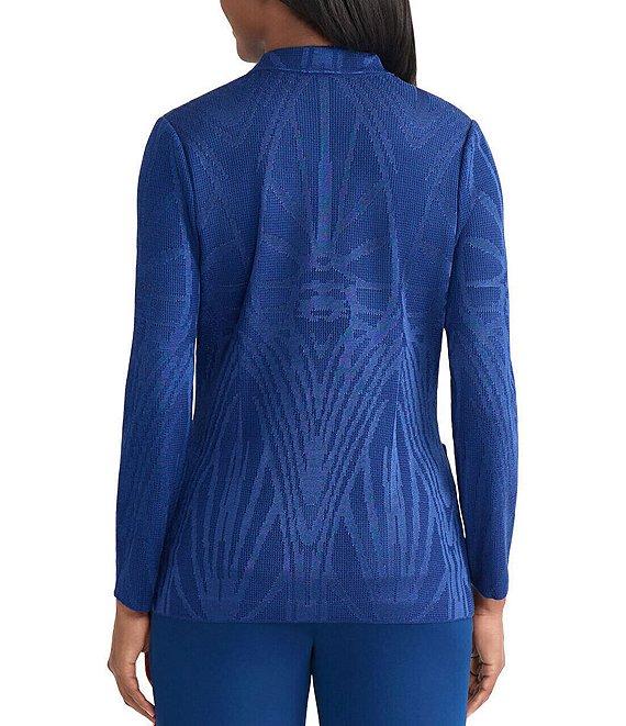 MISOOK Tonal Knit Jacquard Modified Mandarin Collar V-Neck Long Sleeve Jacket
