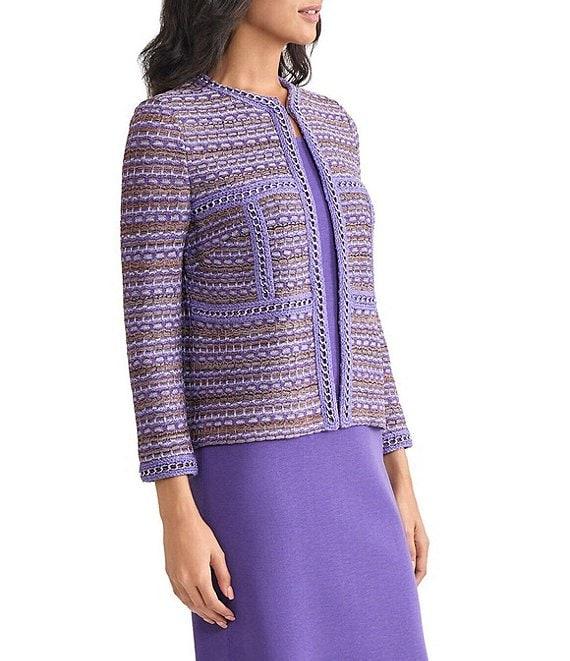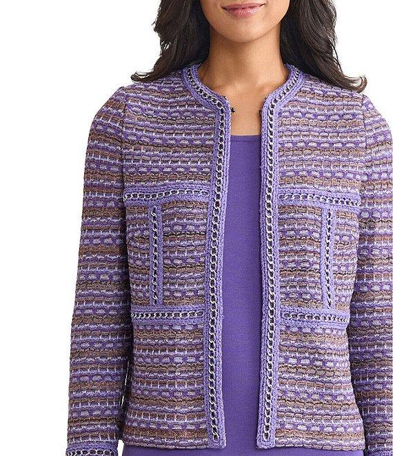 MISOOK Tweed Knit Crew Neck Bracelet Sleeve Chain Trim Jacket