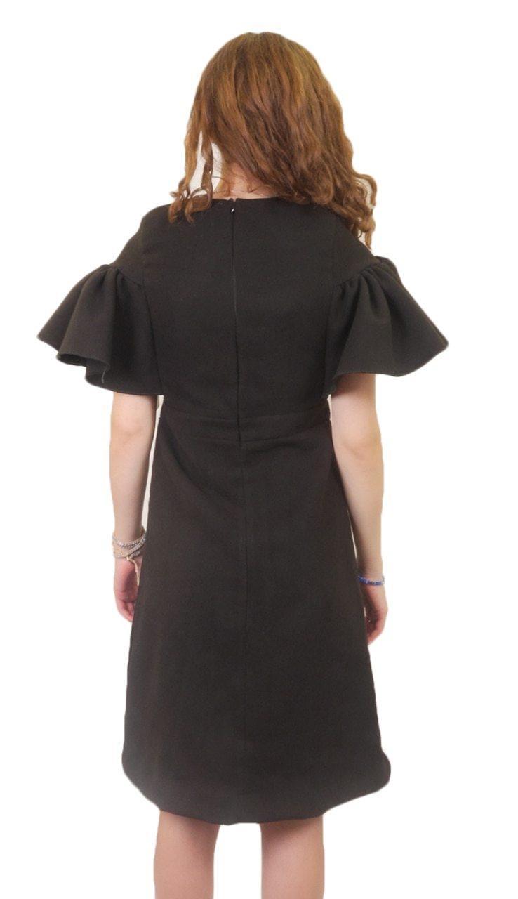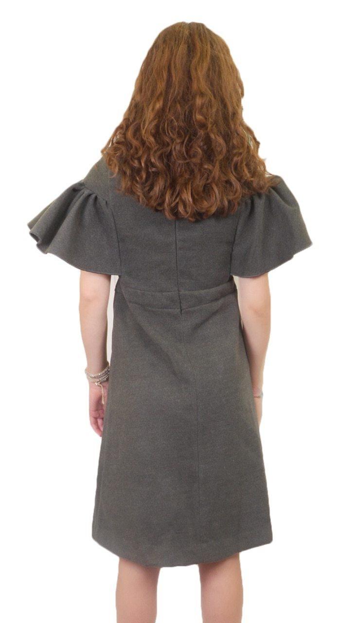 Juniors jumper with center pleat and gold buttons detailand large ruffle at the shoulders