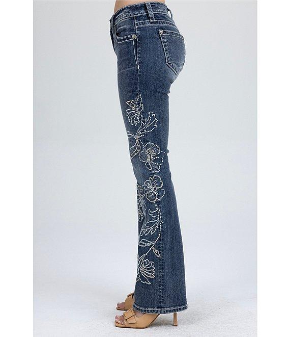 Miss Me Mid Rise Floral Embellished Bootcut Jeans