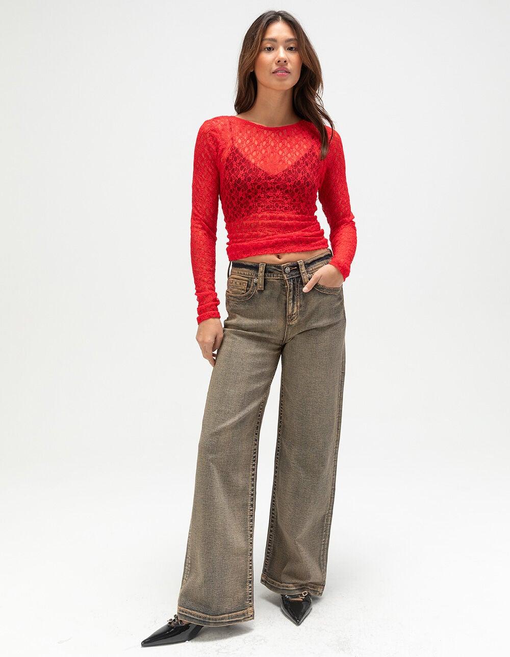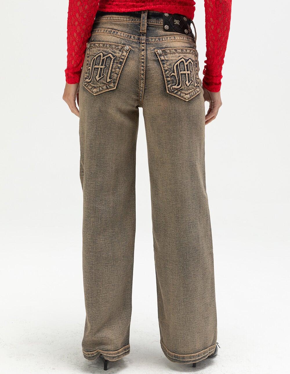 MISS ME Womens High Rise Wide Leg Jeans - Dark Wash