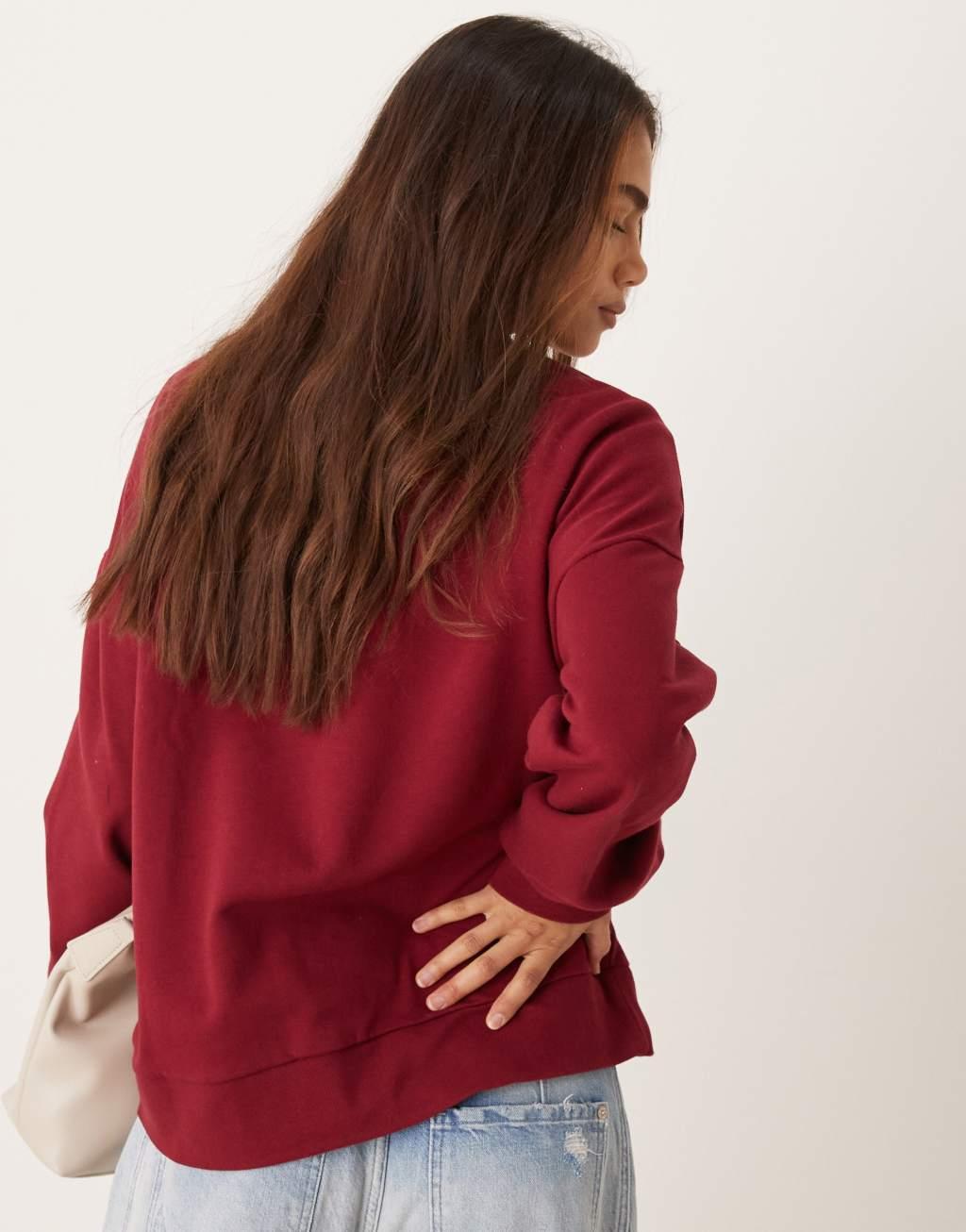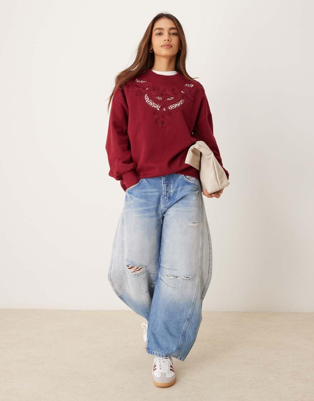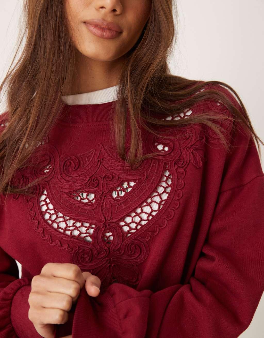 Miss Selfridge embroidery cut out detail sweatshirt in burgundy